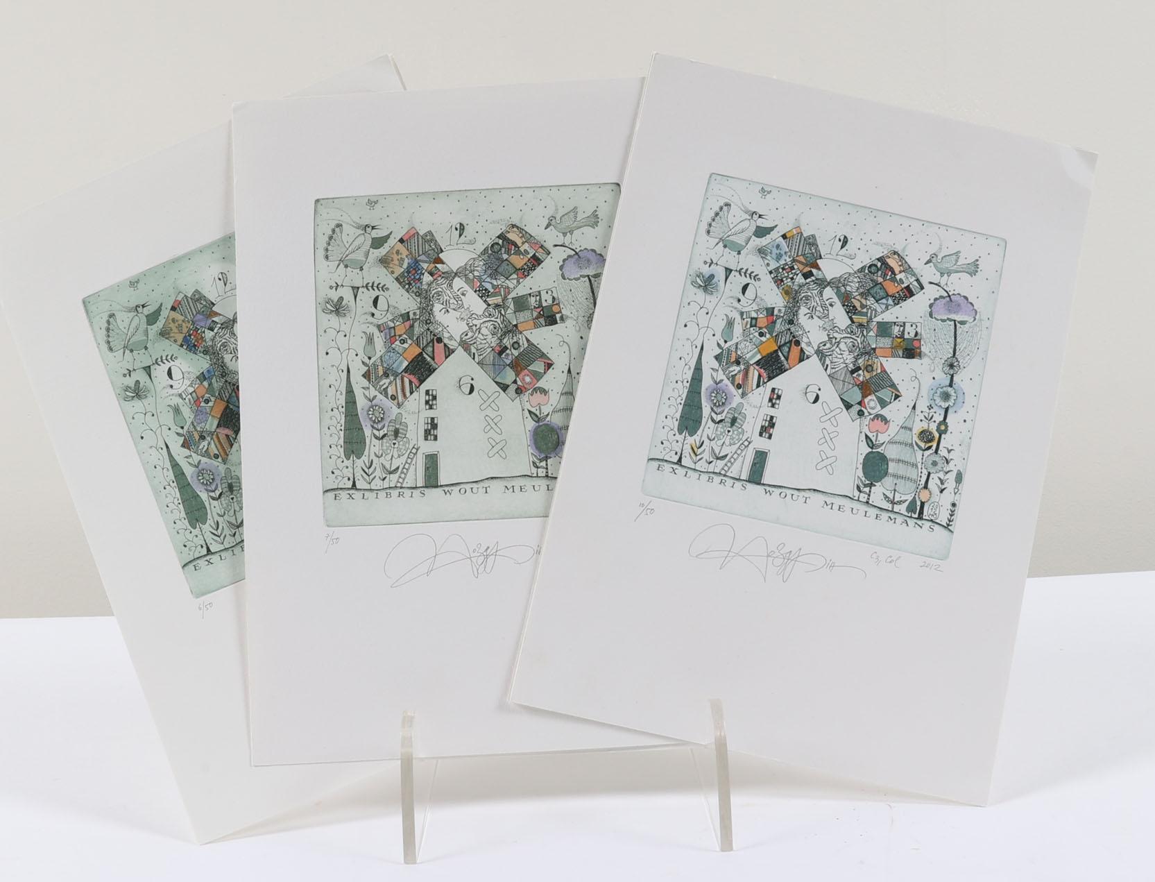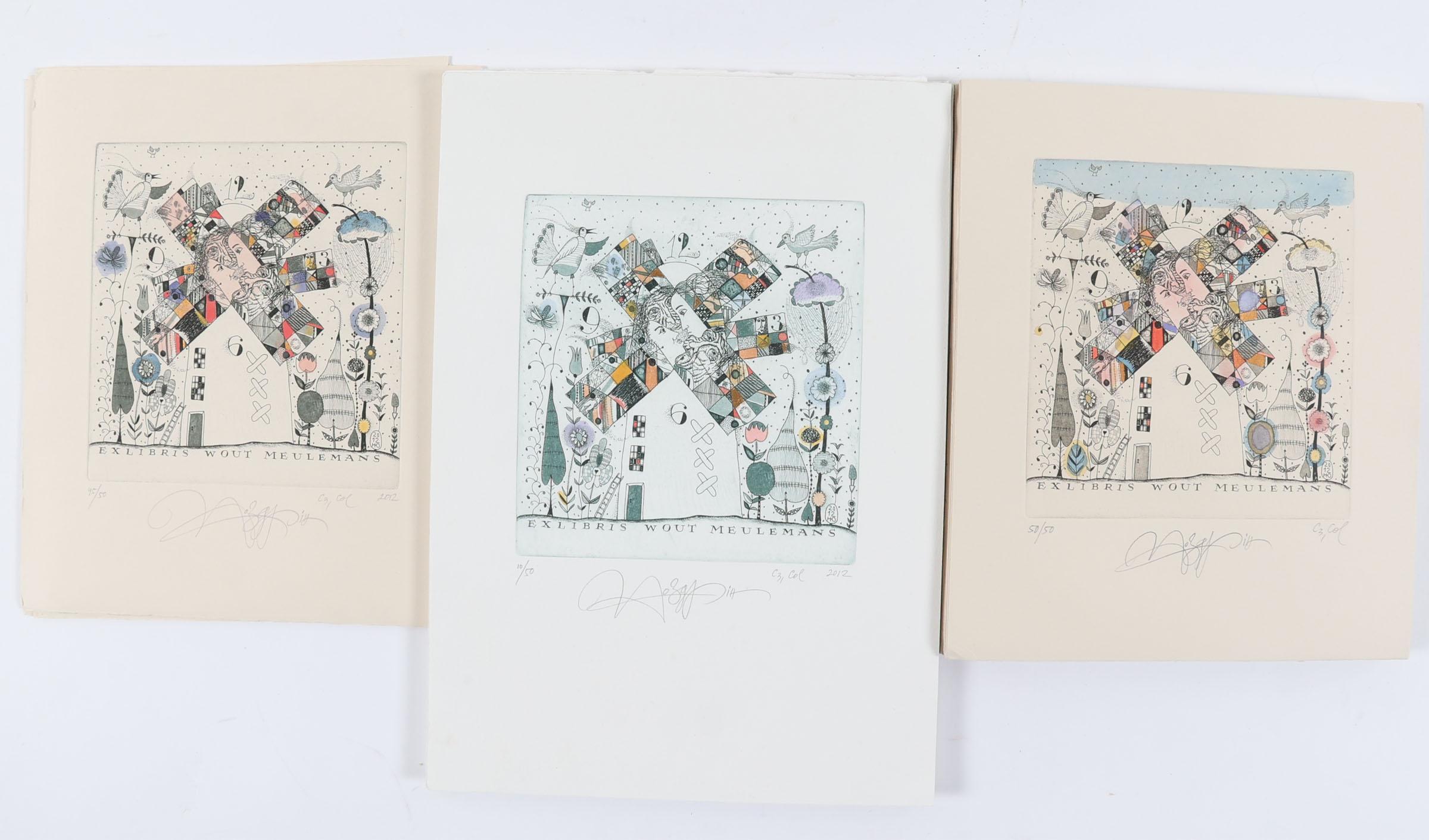 Nozdrin, Y., exlibris Wout Meulemans, 2012, 145 x 140 mm, C3C5/col, genummerd en gesigneerd, plm. 55 stuks (oplage)