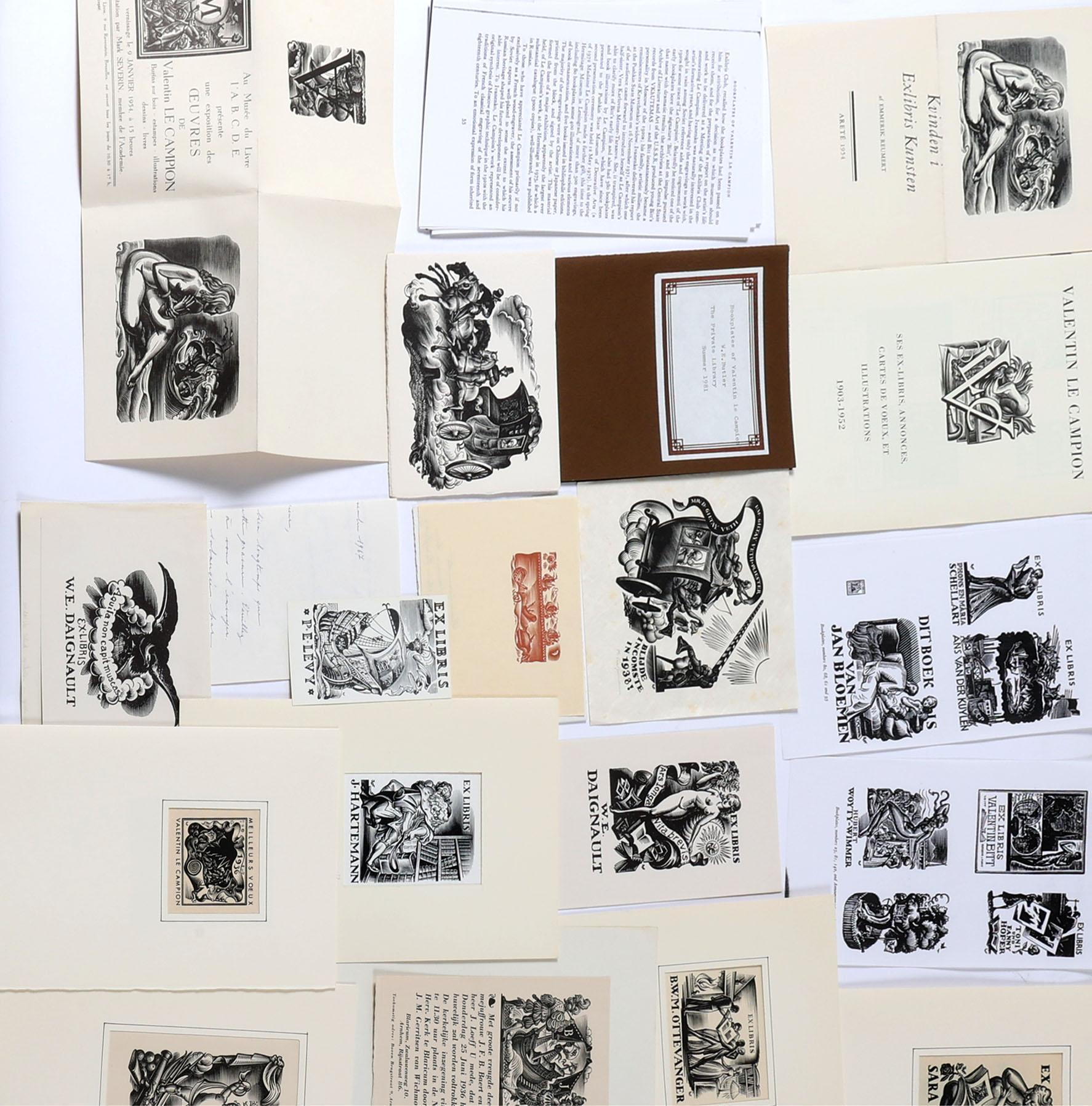 Campion, V. le, plm. 45 exlibris en kleingrafiek (vooral kleingrafiek), X2, in pass-partout, met werklijst etc., enkele gesigneerd