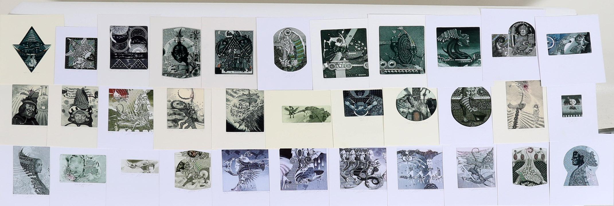 Jakovenko, J., 50 exlibris, C3C5C7, genummerd en gesigneerd (o.a. voor Polderman, Pavlova, Pestalozzi, Willemsen, Vermes, Sliep, Deurinck, Vertongen, Beumont, Walaard, Natalia Jakovenko)