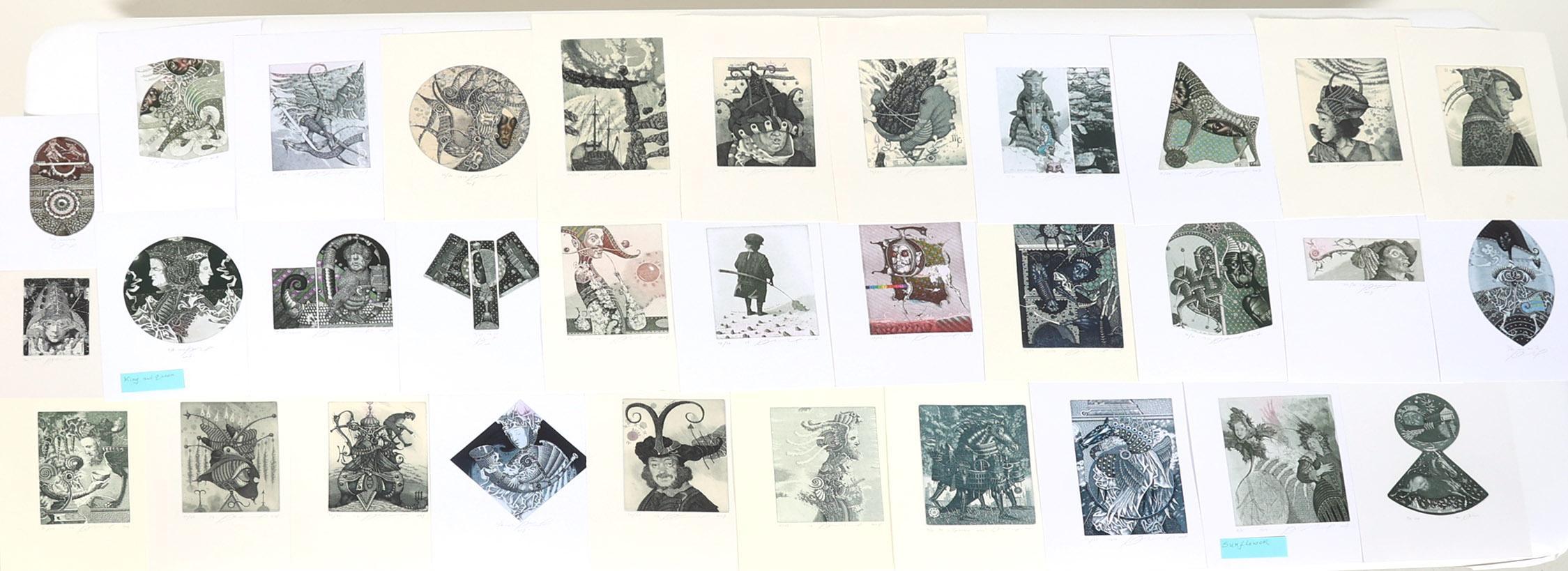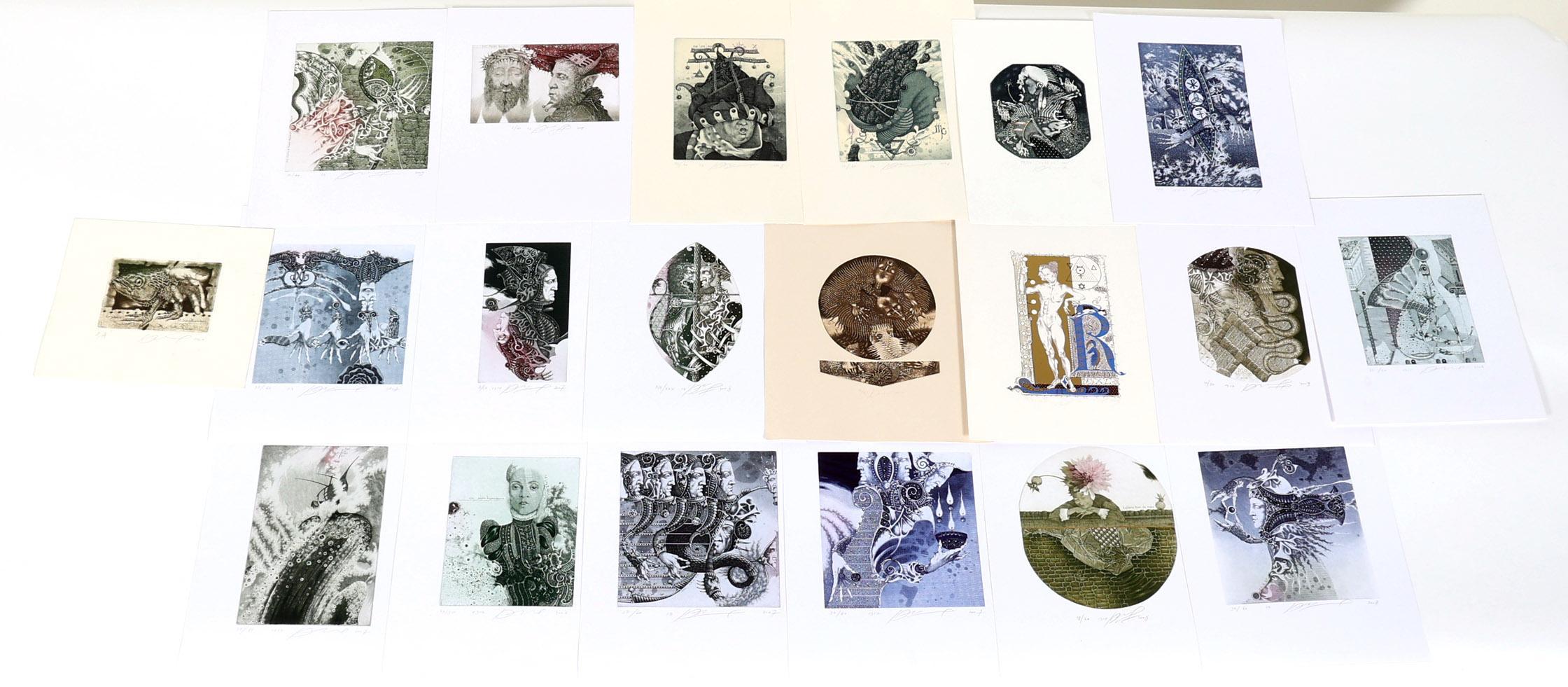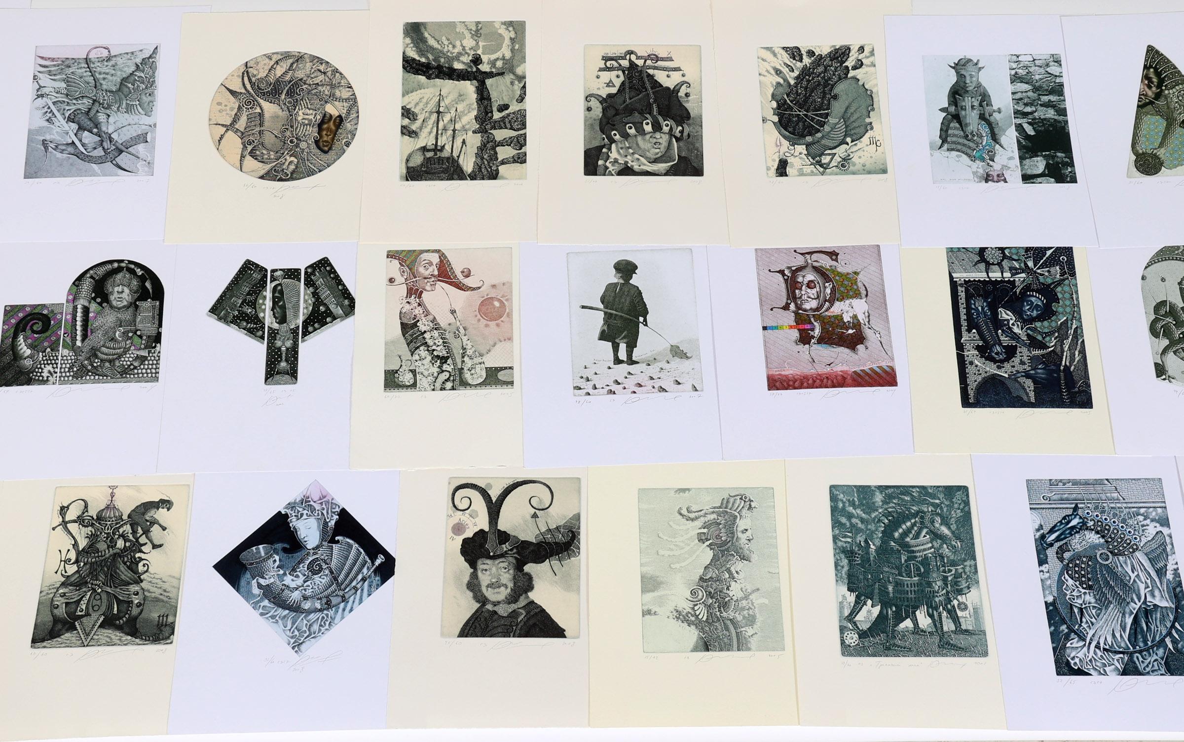 Jakovenko, J., 50 exlibris, C3C4C5, genummerd en gesigneerd (o.a. voor Vogelvanger, Soudlenkov, Polderman, Wijmeersch, Kudo, De Haas, Bujdak, Renigini, Aarsen)