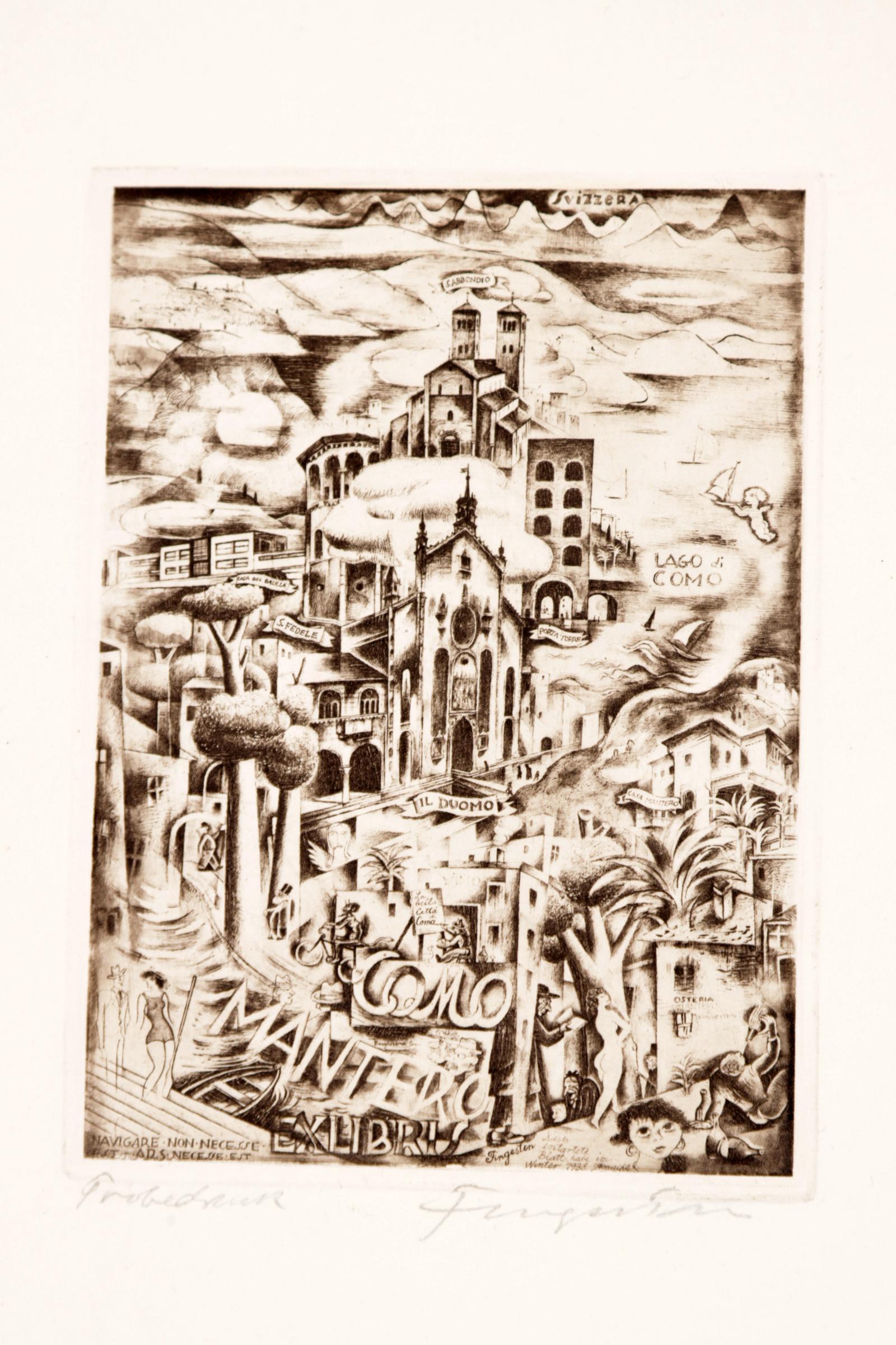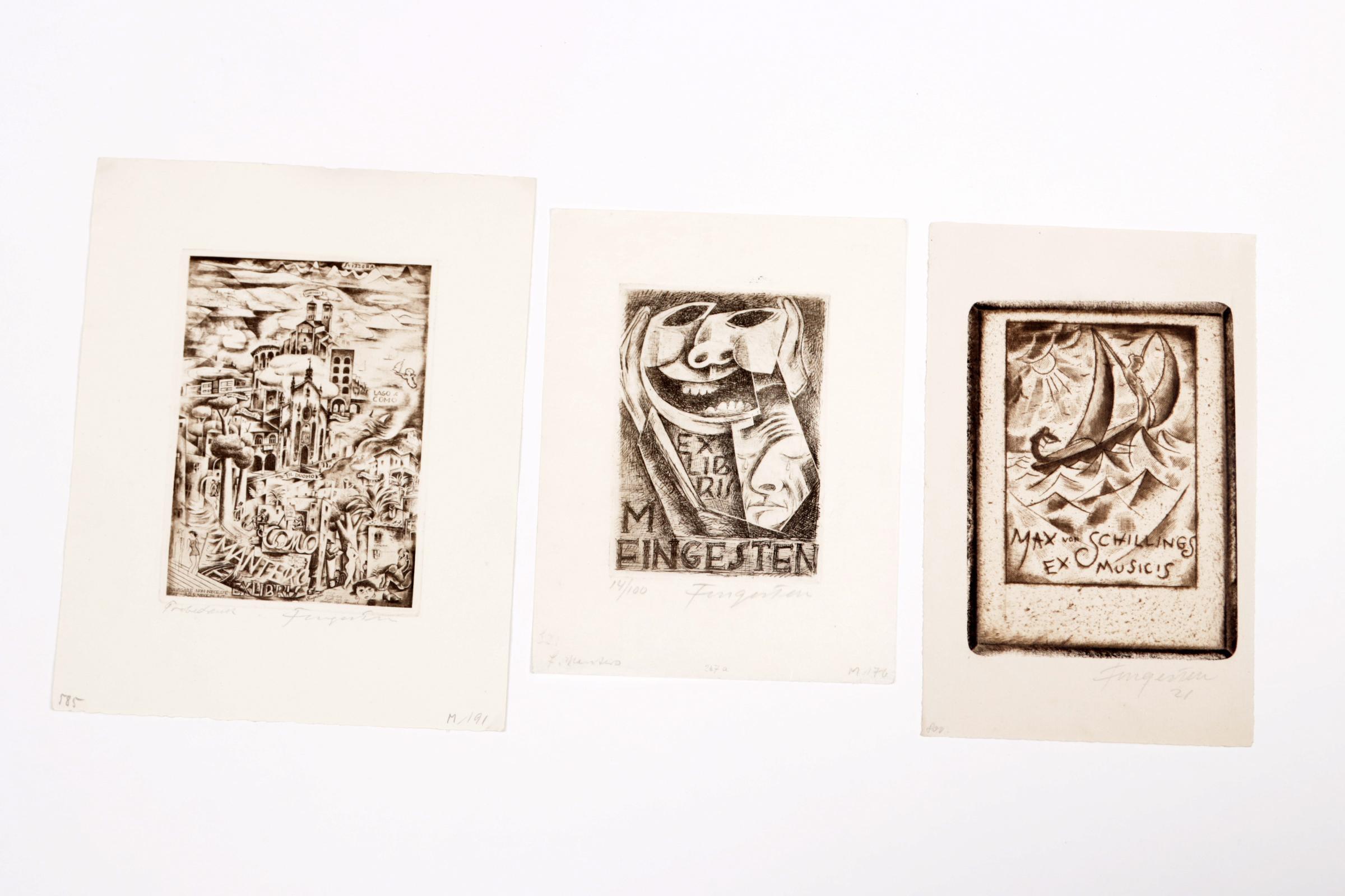 Fingesten, M, 3 exlibris (Mantero, Max von Schilling, M. Fingesten), C3, gesigneerd, opgeplakt (geweest)