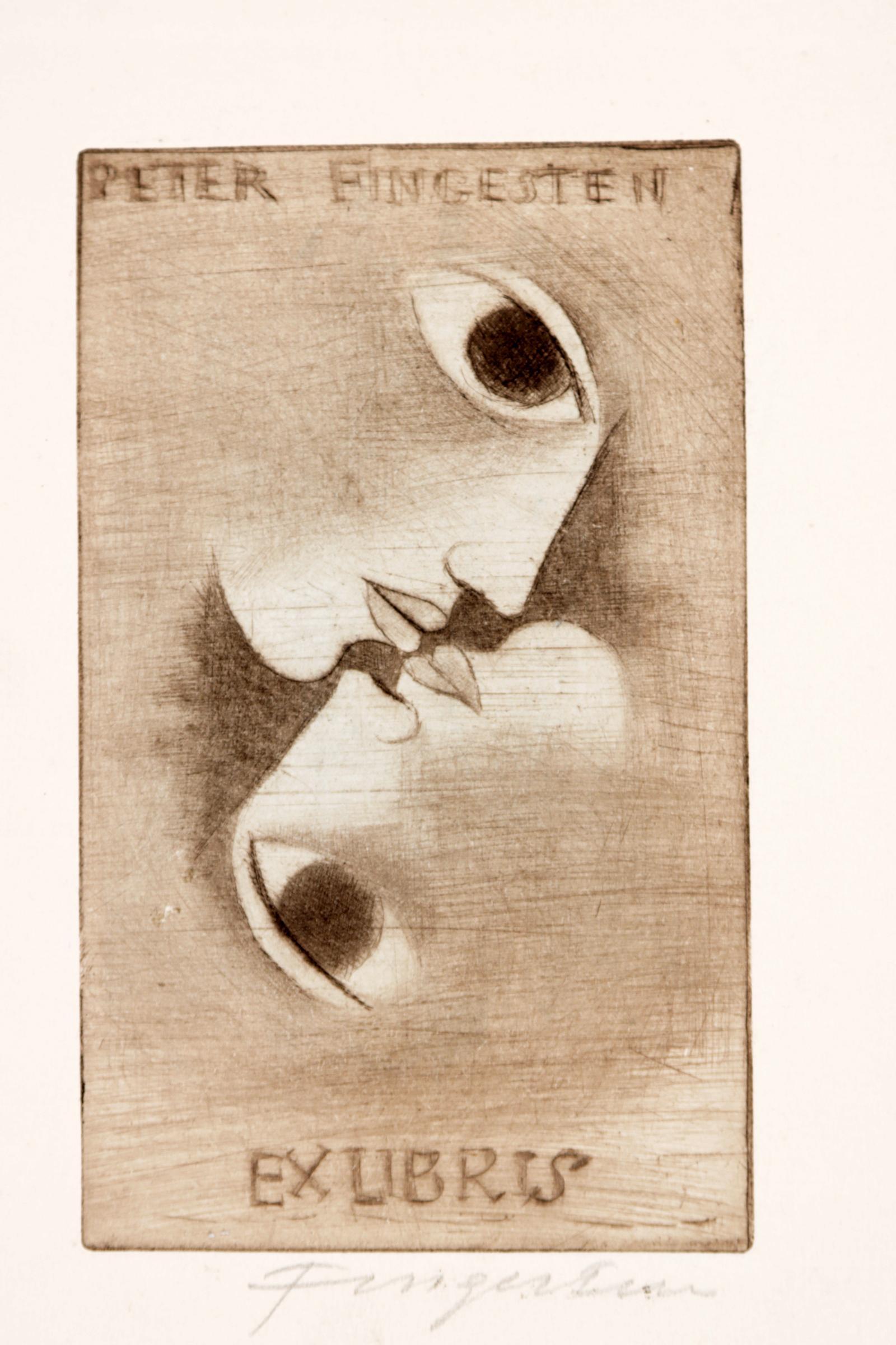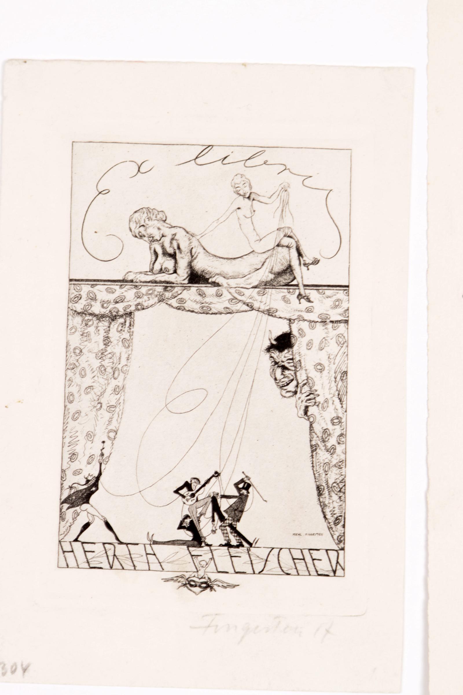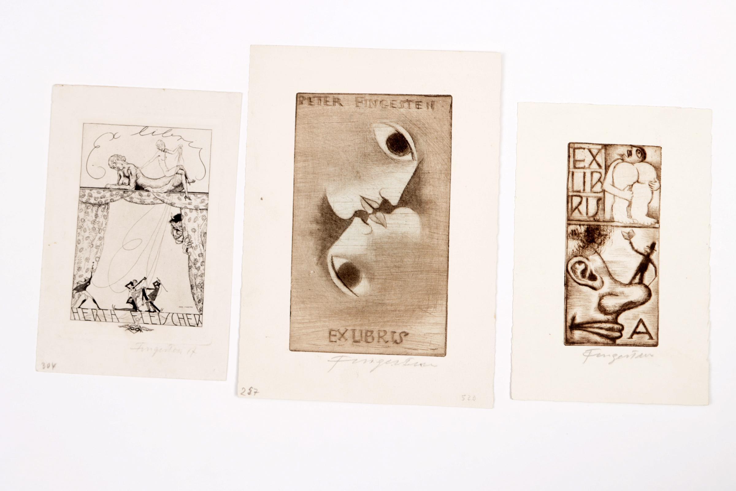Fingesten, M, 3 exlibris (Herta Fleischer, Peter Fingesten, A.), C3, gesigneerd, opgeplakt (geweest)