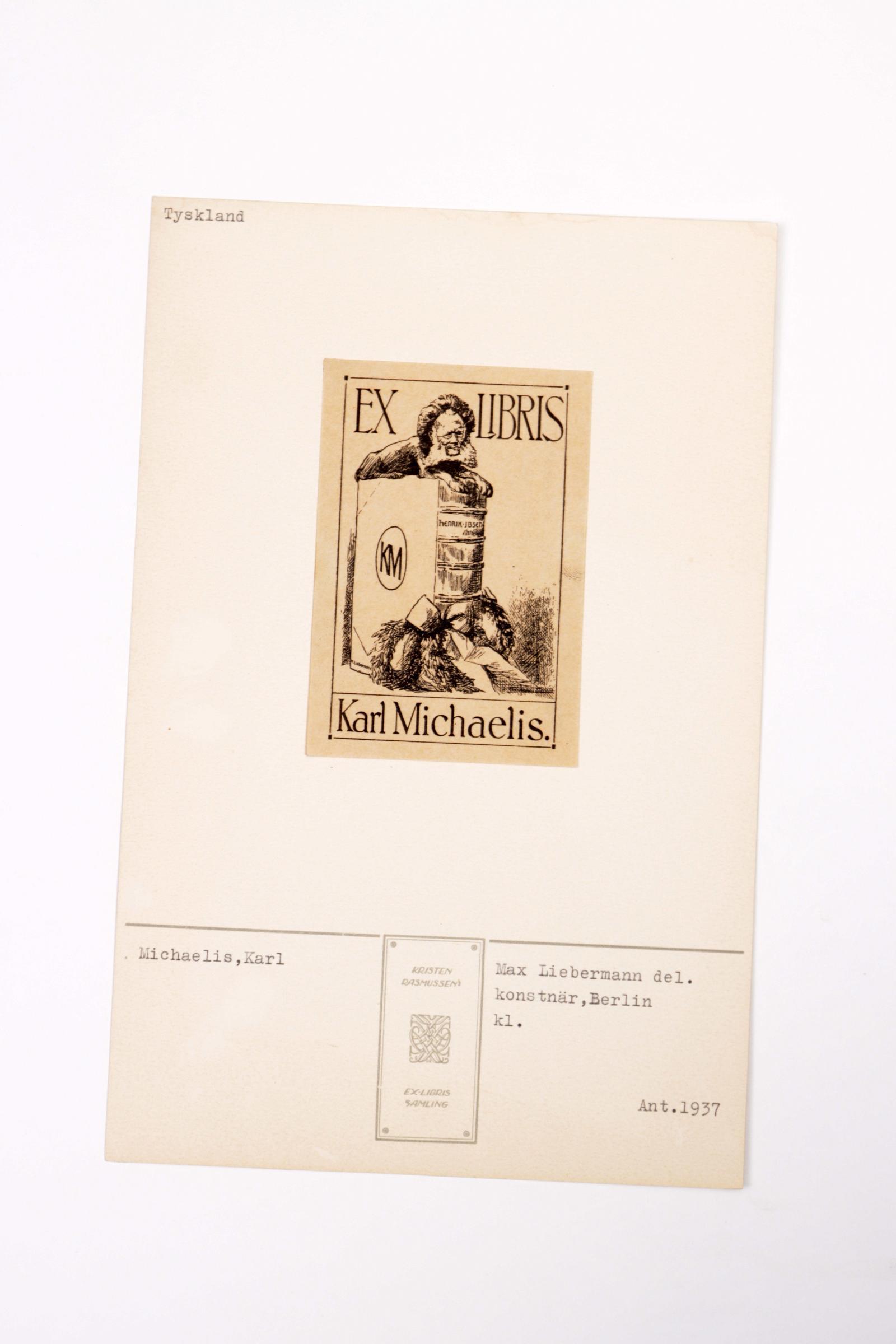 Liebermann, M., exlibris Karl Michaelis, 1910, cliché, opgeplakt, niet gesigneerd