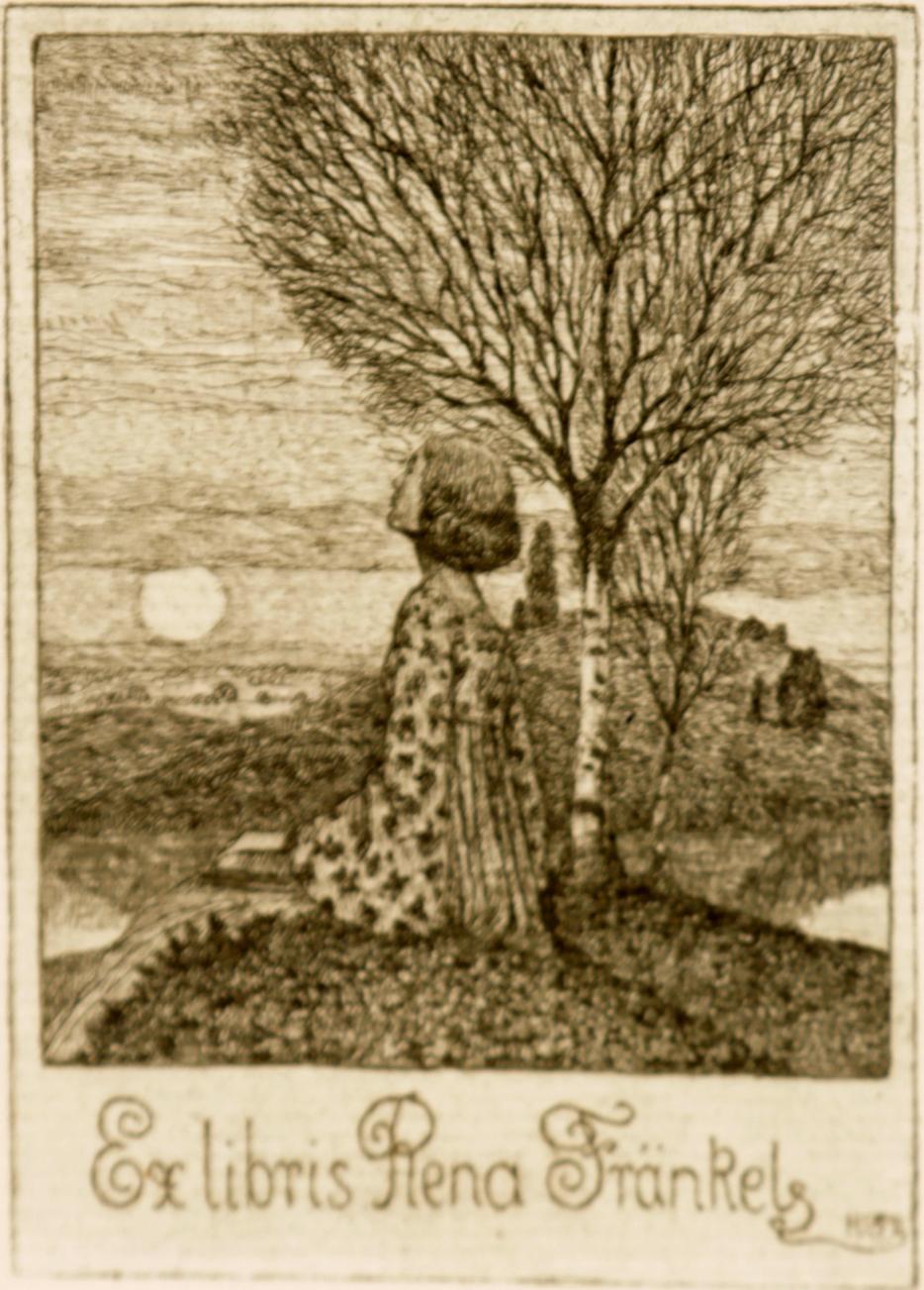 Vogeler, H., exlibris Rena Fraenkels, C3, niet gesigneerd, opgeplakt geweest