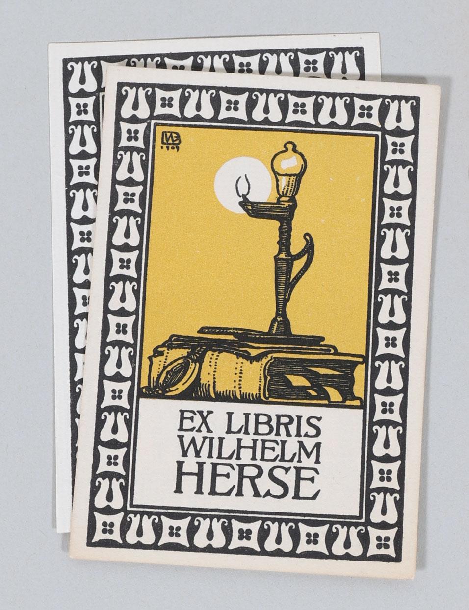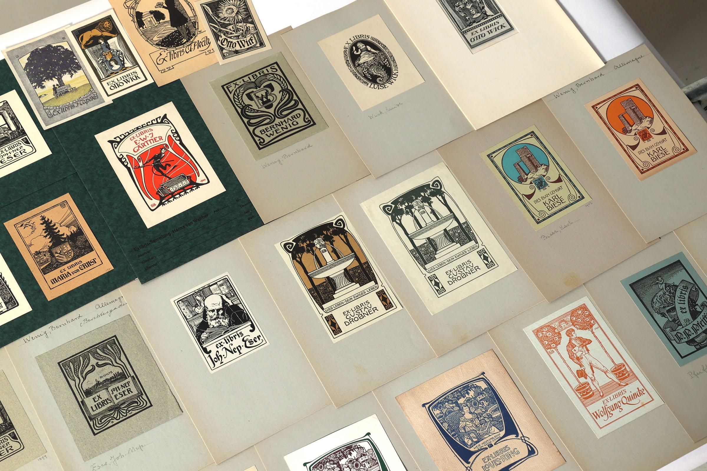 Wenig, B., plm. 65 exlibris, cliché, niet gesigneerd, opgeplakt