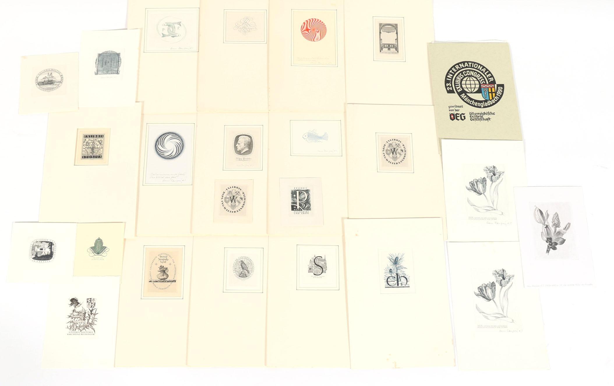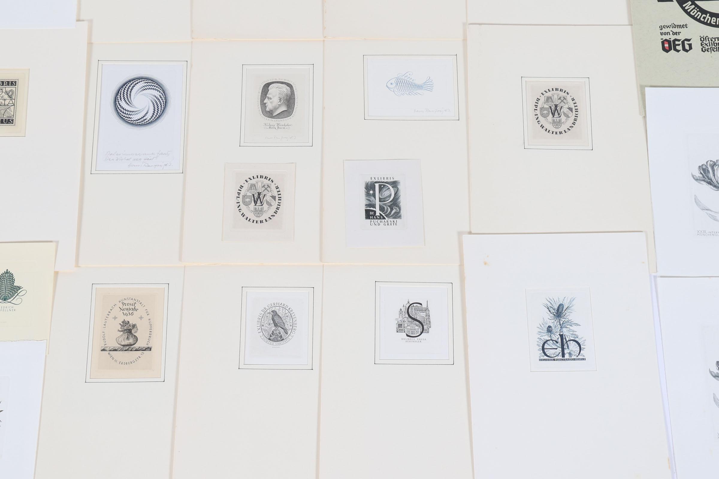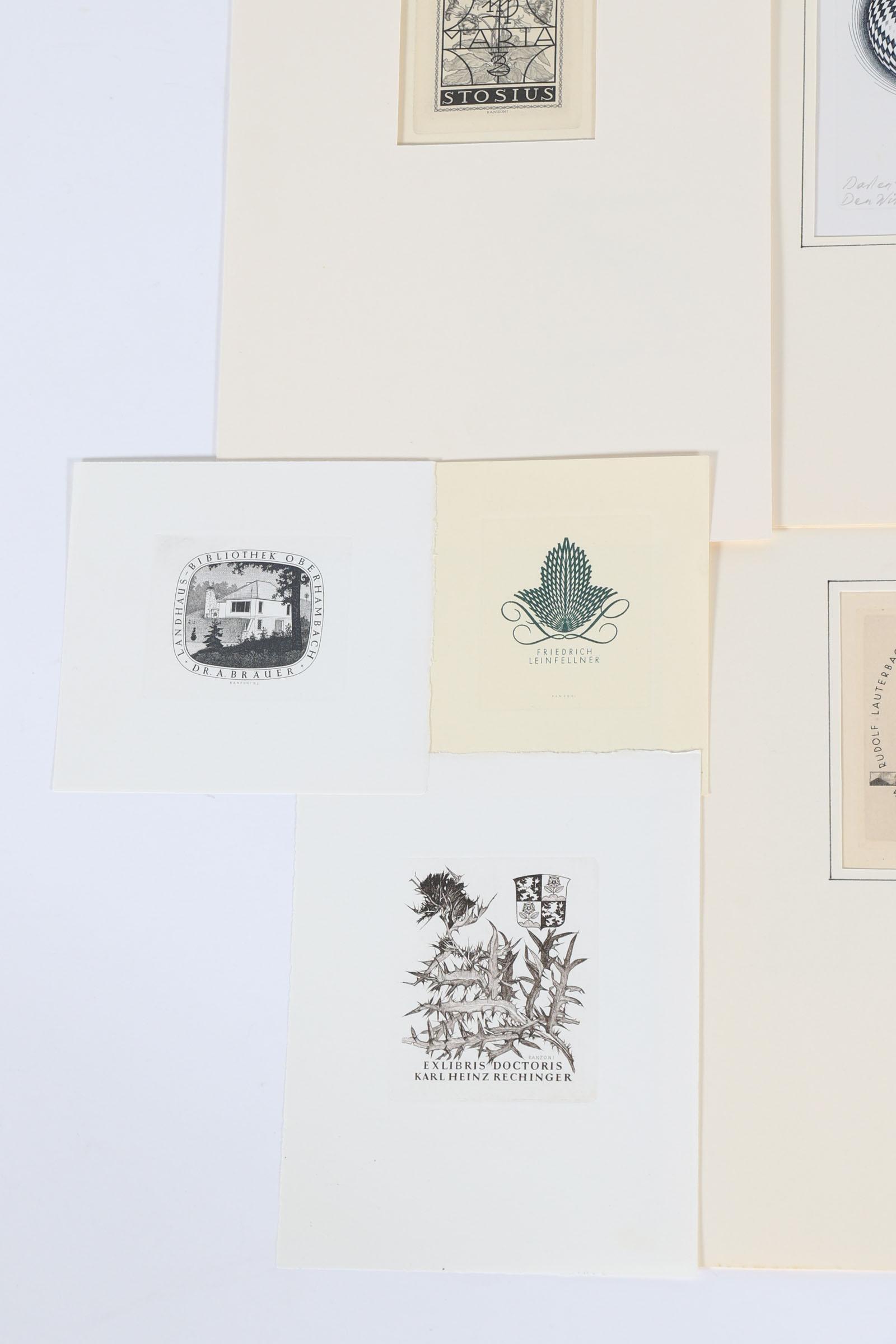 Ranzoni. H., 24 exlibris / kleingrafiek, C2, deels gesigneerd, in pass-partout. O.a. voor Pucharski, Humplstotter, Rechinger, Reisinger, Schindler, Pijnenborgh