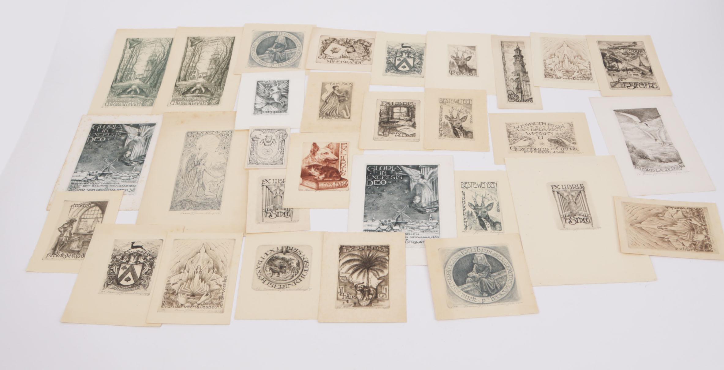 Yserinkhuysen, F., 29 exlibris / kleingrafiek, C3 / C4, enkele doubletten, gesigneerd. Deels wat verbruind.
