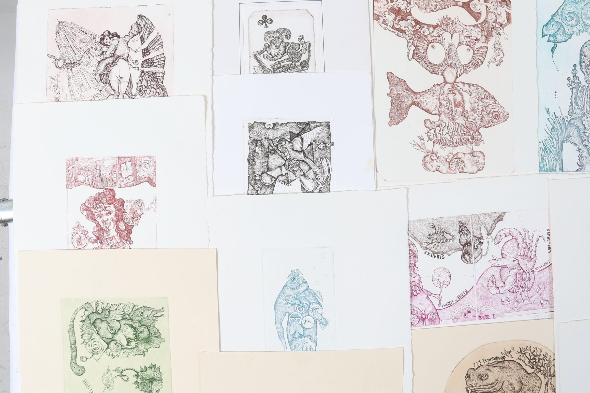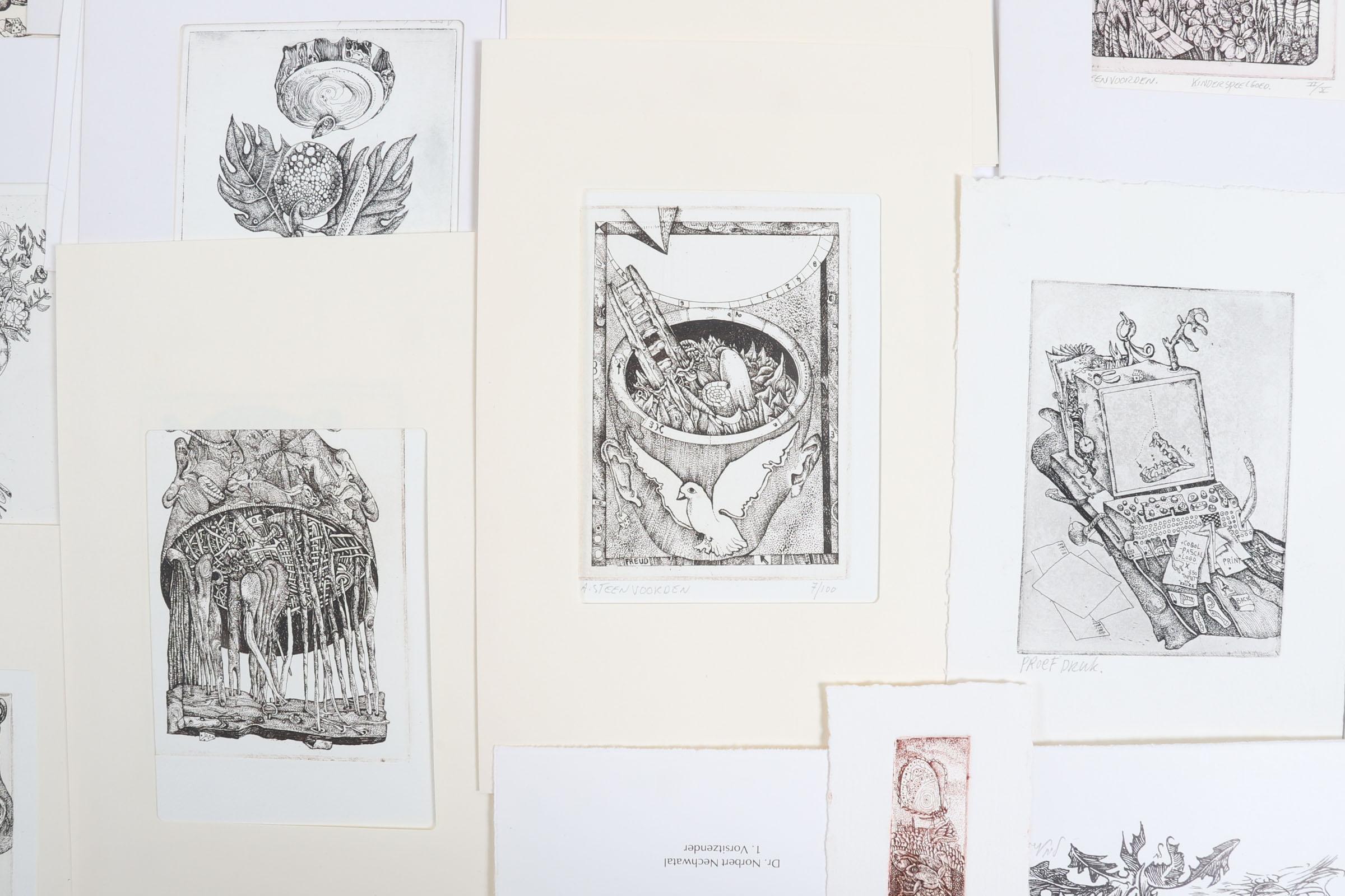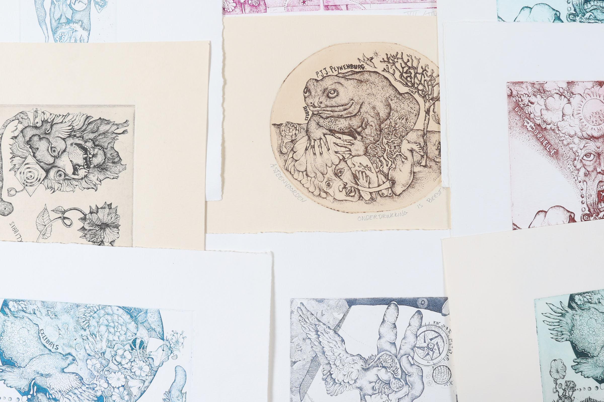 Steenvoorden, A., plm. 50 exlibris / kleingrafiek, C3, deels grotere formaten, gesigneerd, deels opgeplakt