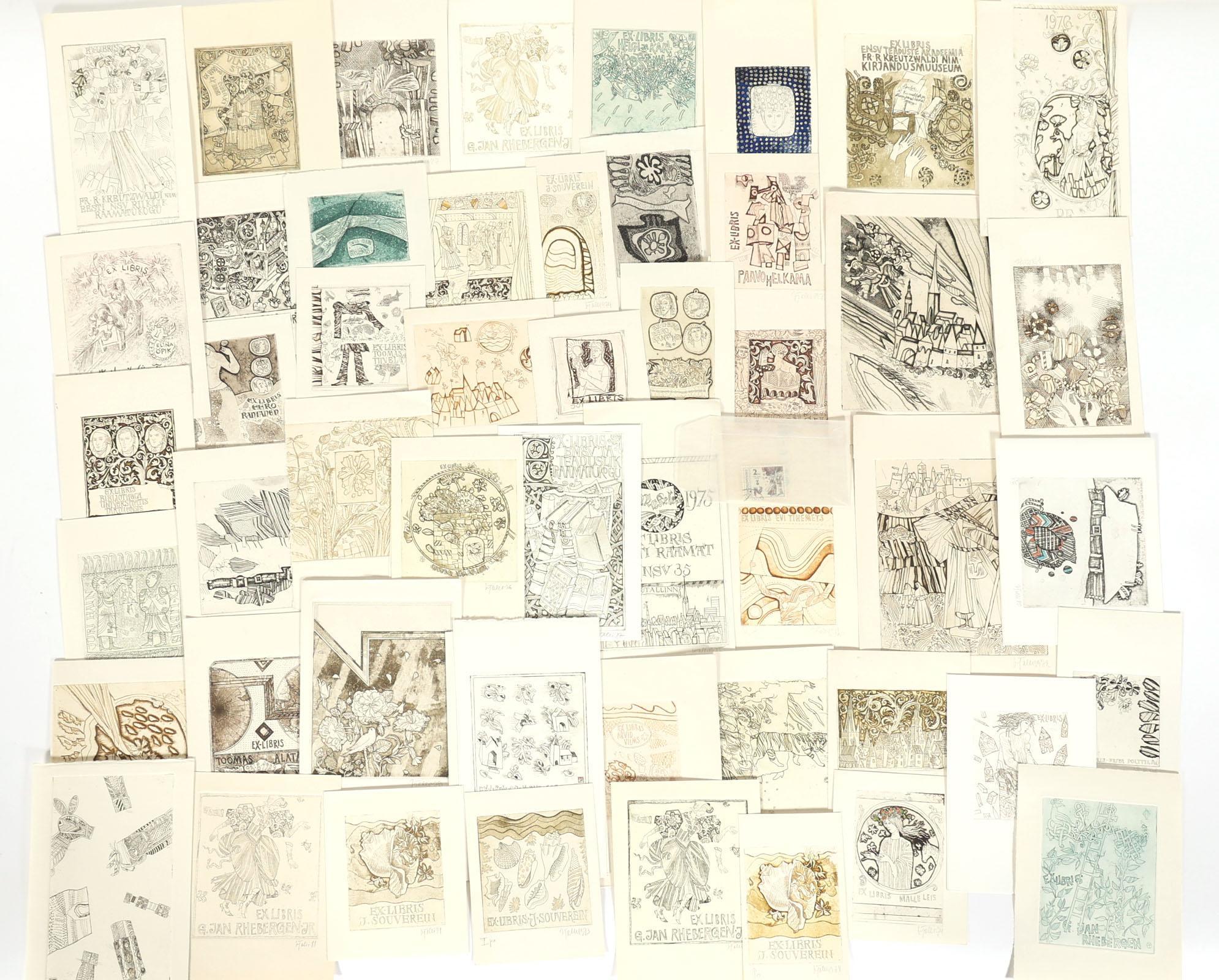 Tolli, V., plm. 50 exlibris / kleingrafiek, C3 (deels col), deels gesigneerd.