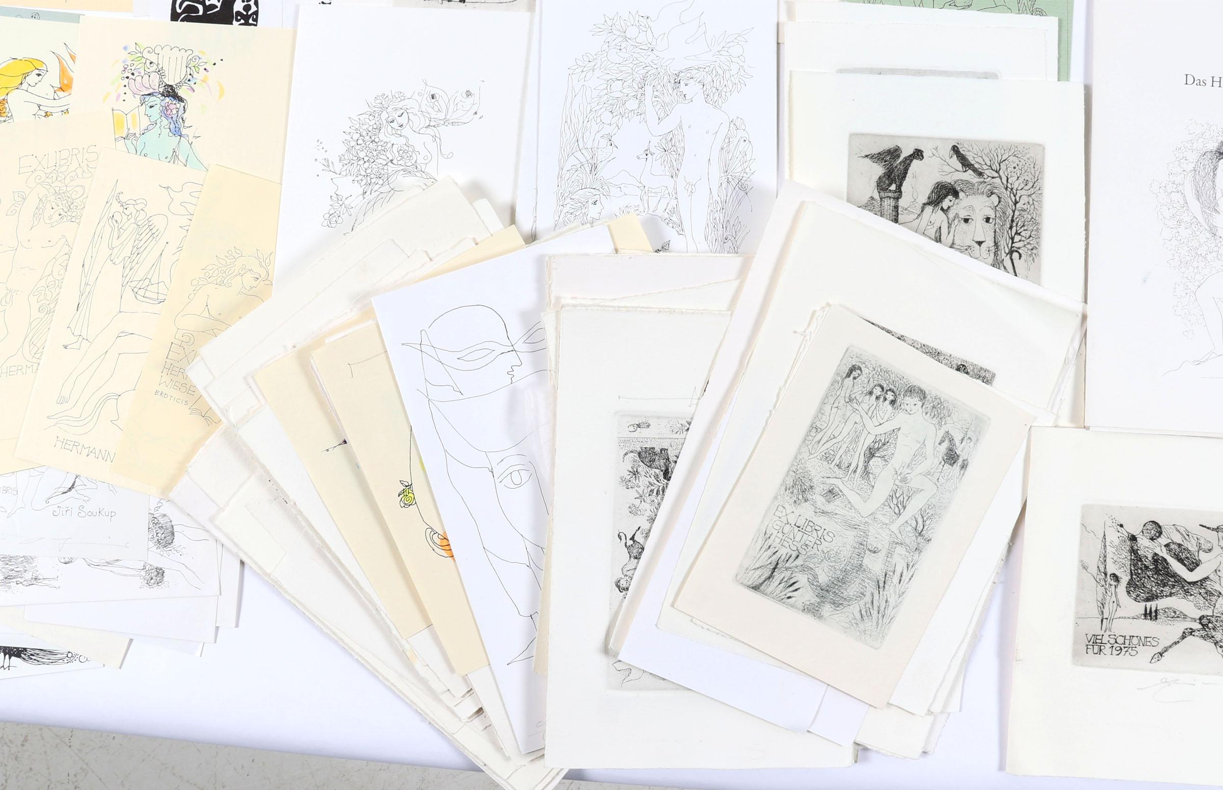 Weidenhaus, E., plm. 150 exlibris / kleingrafiek, voornamelijk C3, grotendeels gesigneerd, plus informatie over de kunstenaar, bevat enkele doubletten