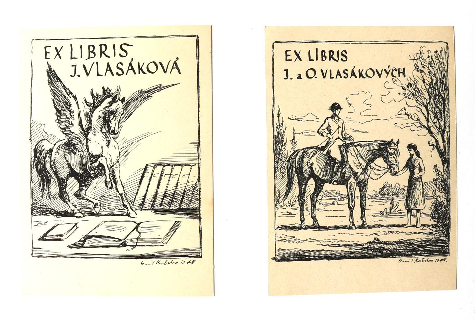 Kotrba, E., plm. 140 exlibris / kleingrafiek, diverse technieken, deels gesigneerd. Opgeplakt. Veel vrouwelijk naakt en paarden