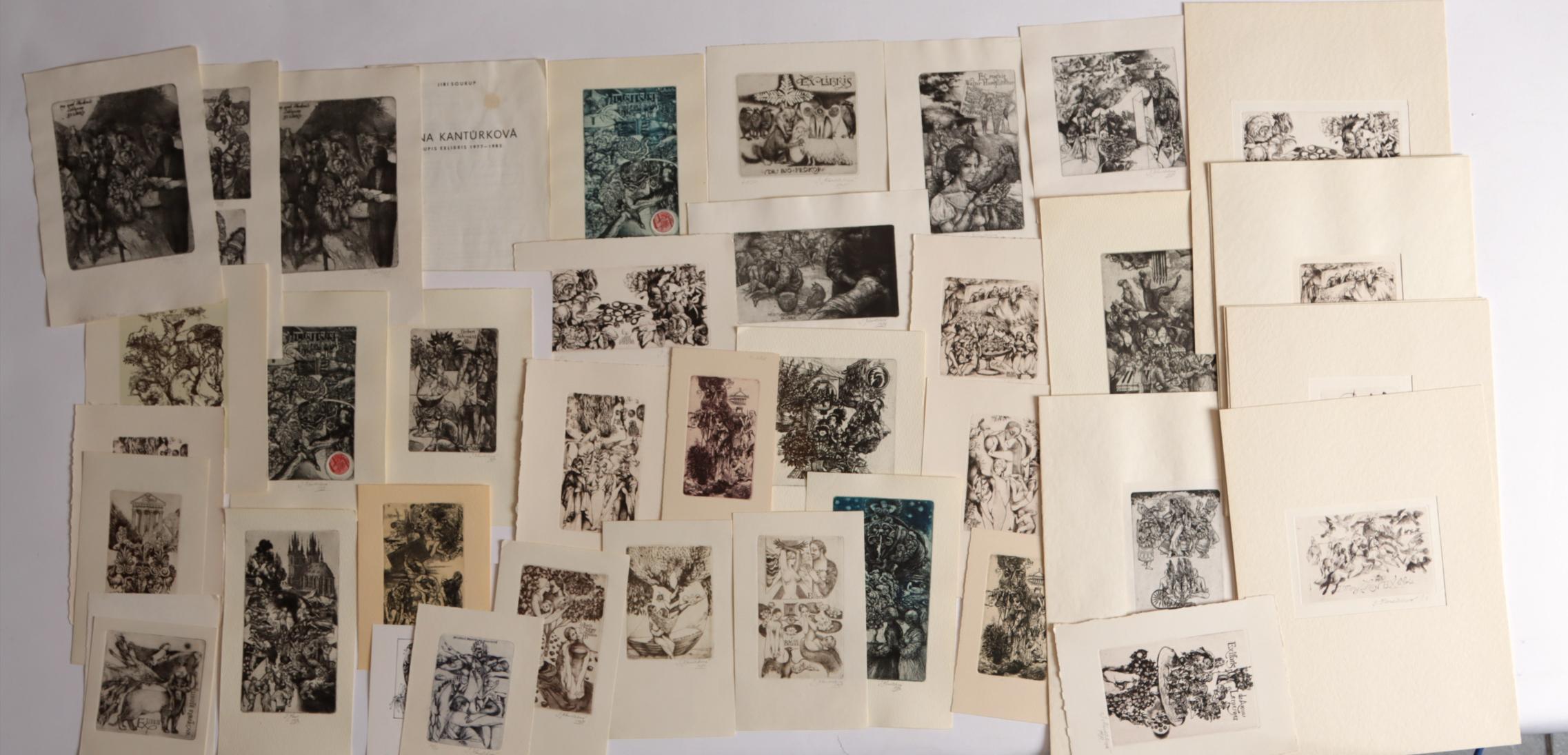 Kanturkova, I., plm. 35 exlibris, C3, gesigneerd, deels opgeplakt