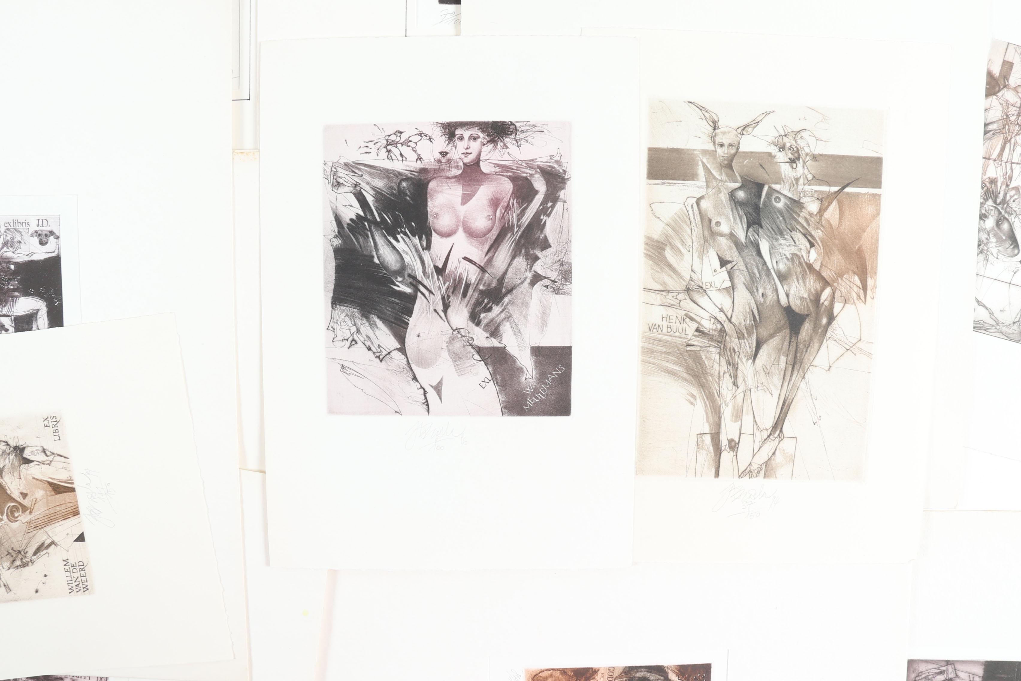 Brazda, J., 61 exlibris, C3C5, genummerd en gesigneerd, deels opgeplakt / in passe - partouts. Voor o.a. V.d. Weerd, Zwiers, Fiamoli, Kollar, Pavla, Bastar, Goetz, Humplik, Hillerbrandt