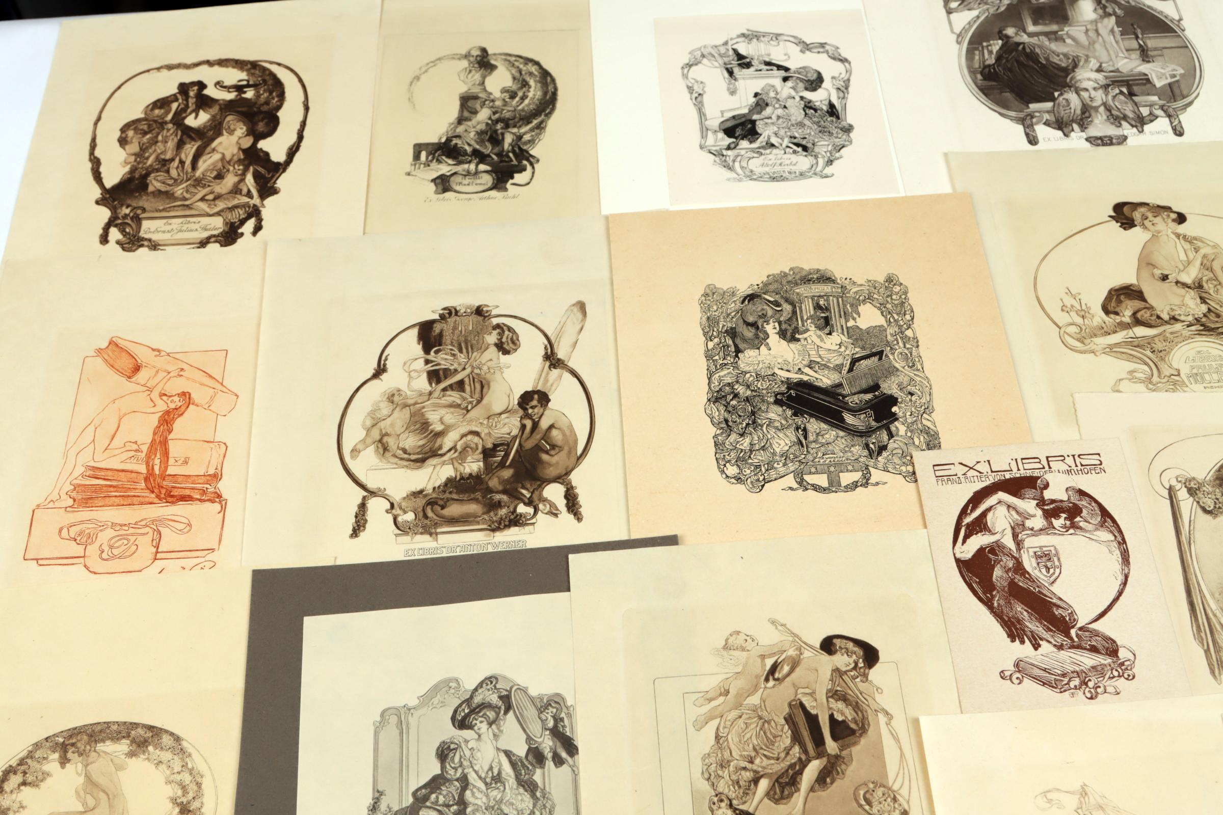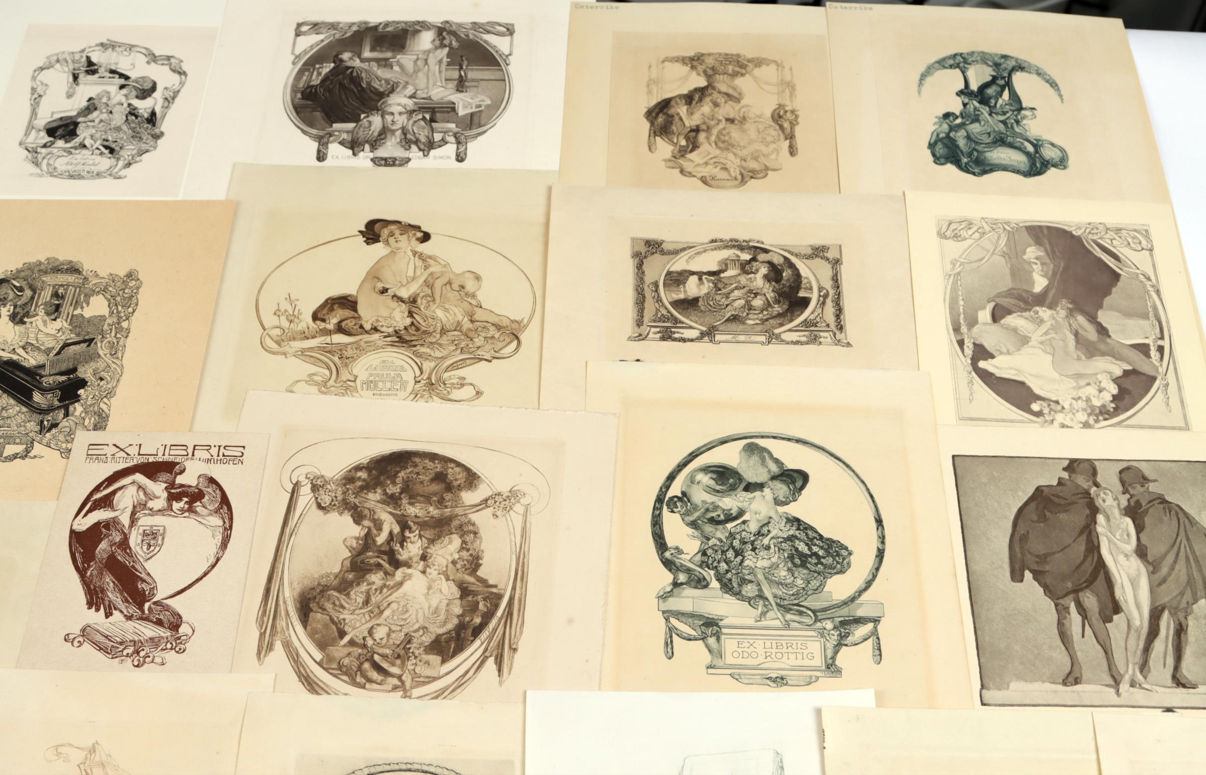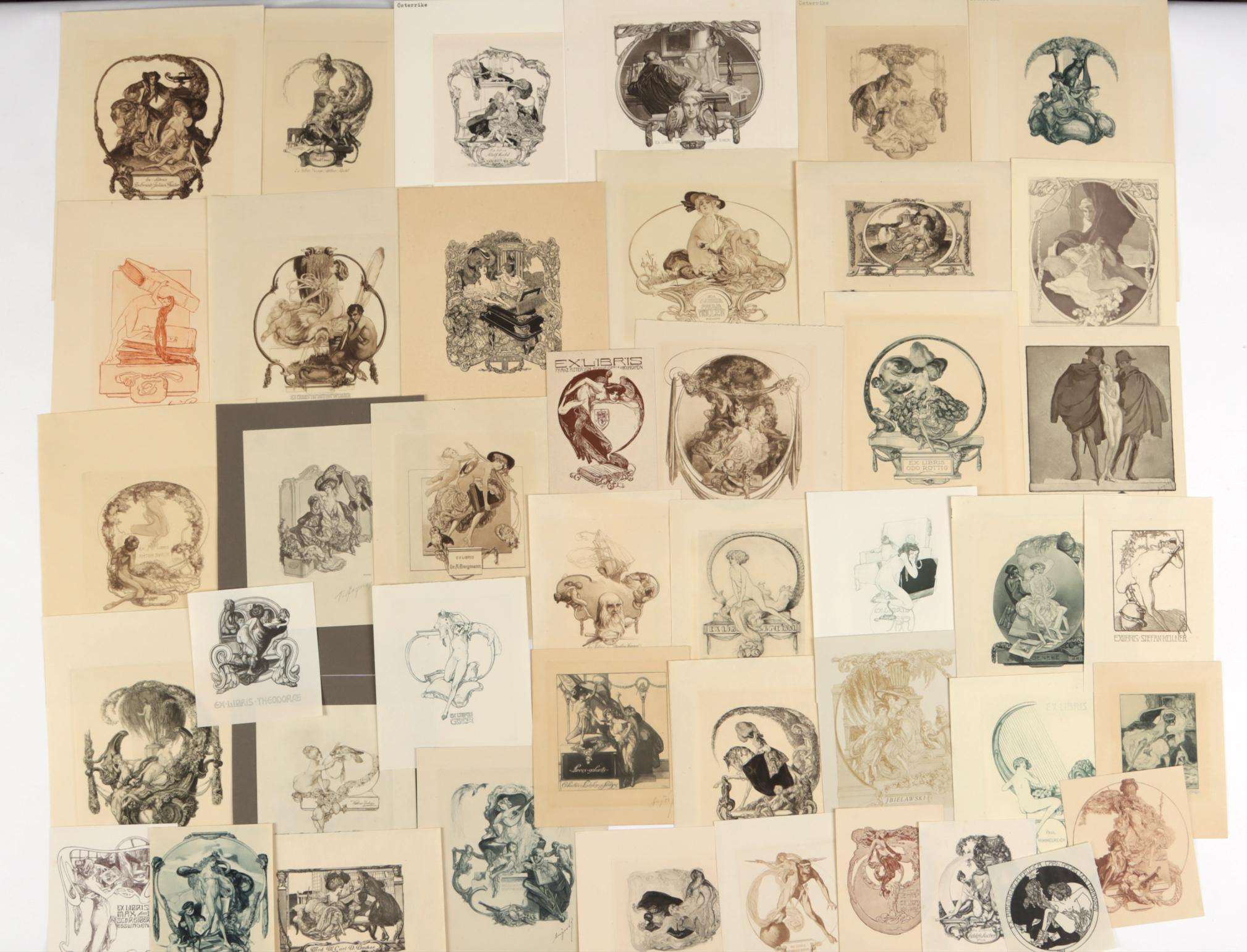 Bayros, F. von, 44 exlibris (37 x heliogravure) + 7 exlibris (cliché), (6 x gesigneerd, rest x niet gesigneerd). Deels opgepakt (geweest). O.a. voor: Ruprecht, Senger, Becher, Ascher, Himmelreich, Roettig, Deneke, Bergmann, Bielawski, Thaler.