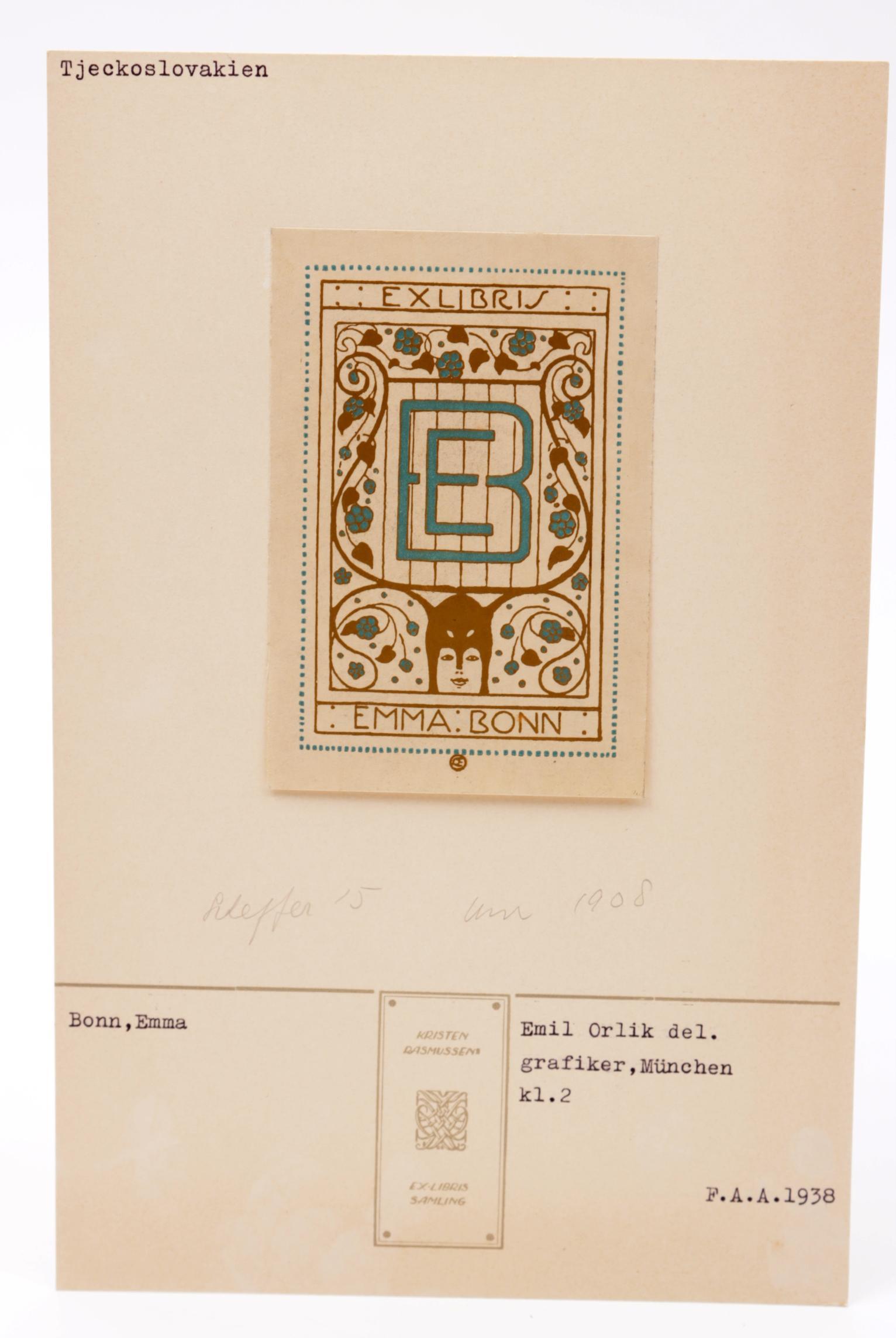 Orlik, E., exlibris voor Emma Bonn, litho / cliché?, niet gesigneerd, opgeplakt.