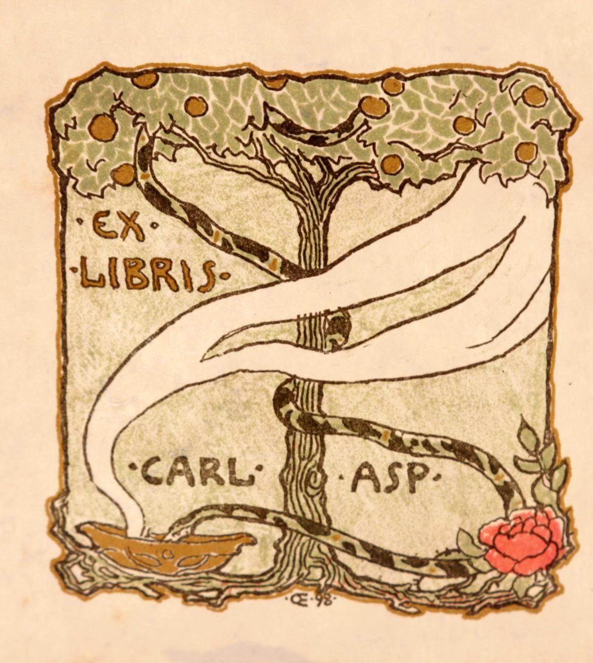 Orlik, E., exlibris voor Carl Asp, litho, niet gesigneerd, opgeplakt