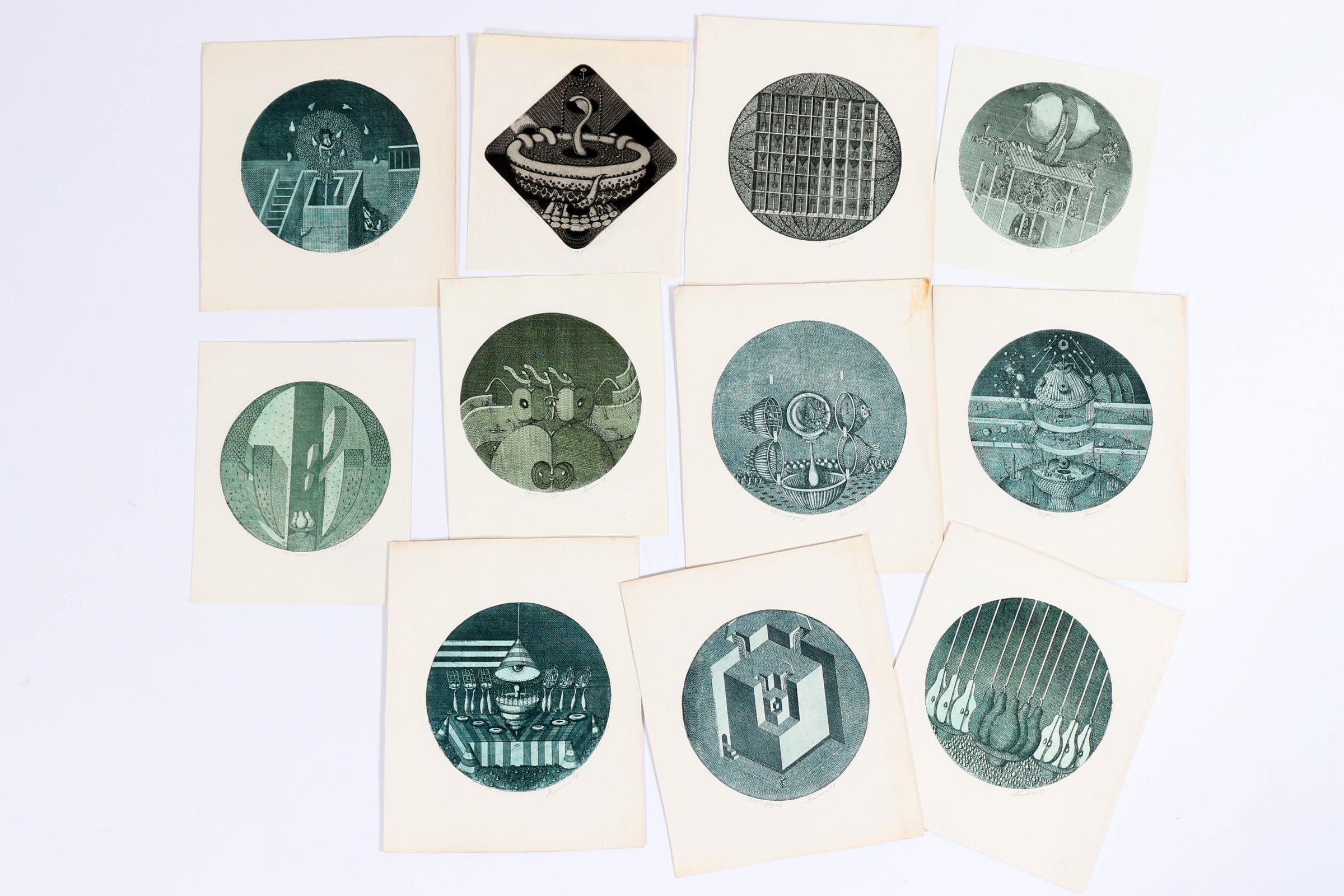 Aksinin, A., 11 exlibris / kleingrafiek, C3, gesigneerd