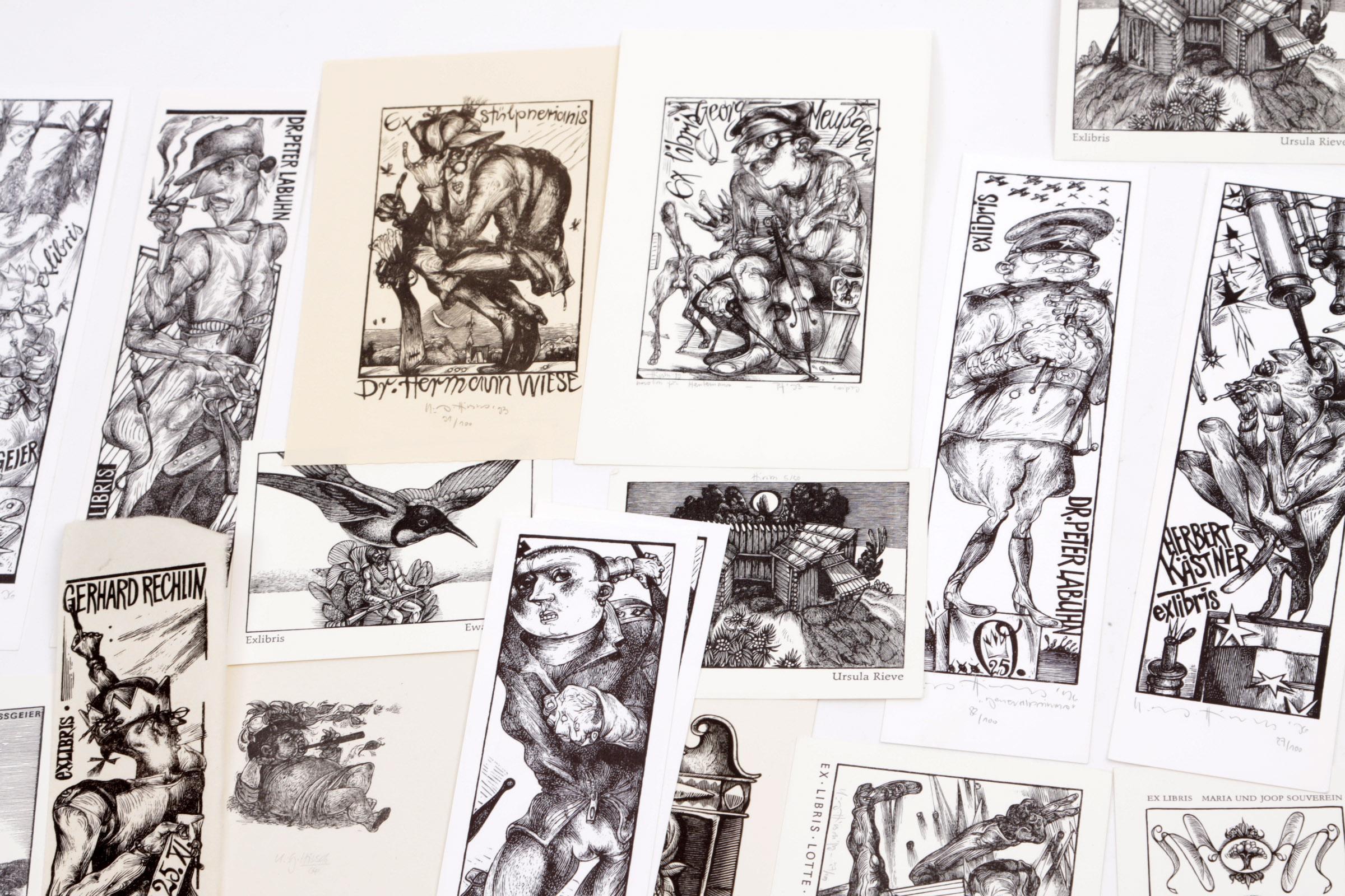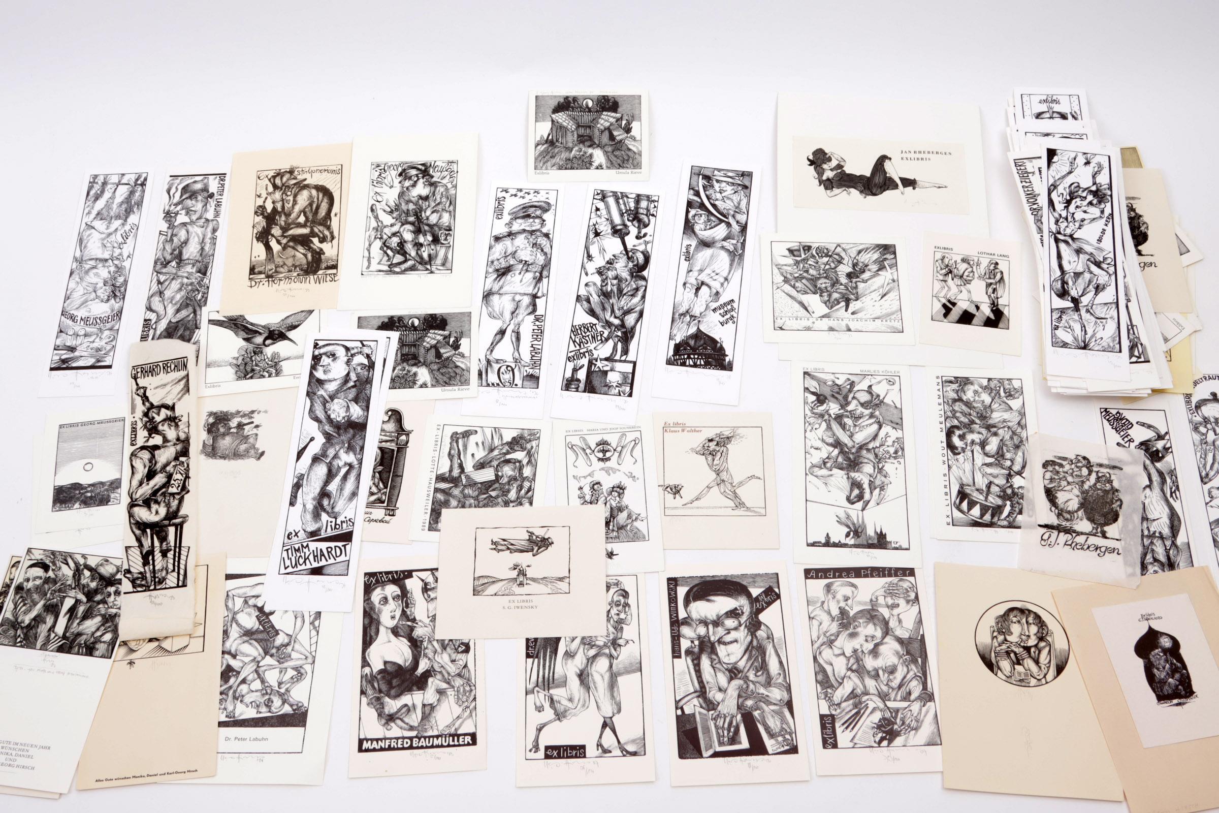 Hirsch, Karl-Georg, plm. 100 exlibris / kleingrafiek, X2 / X6, gesigneerd.