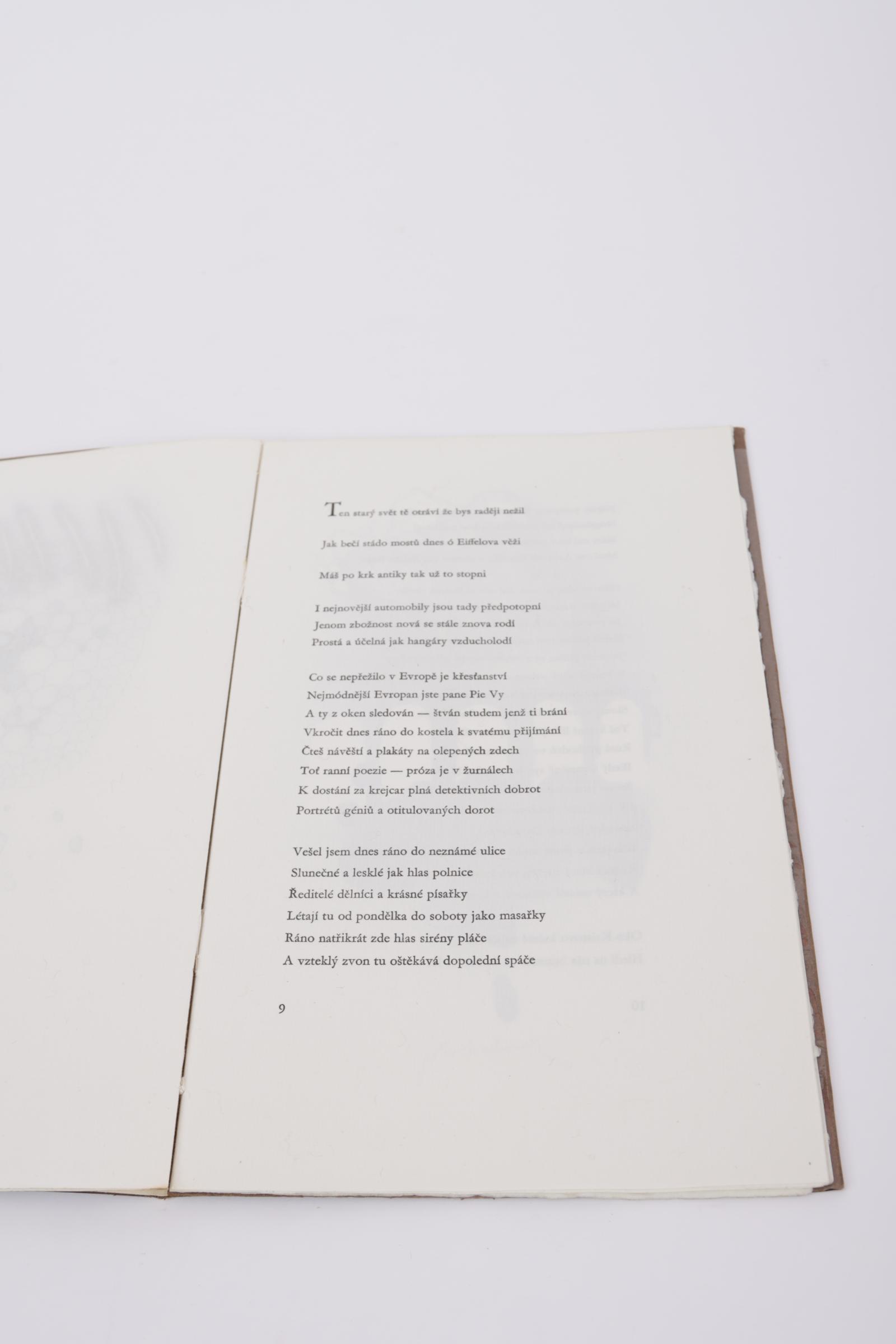 Suchanek, V., 4 meerkleurenlitho's in: Guillaume Apollinaire, Pasmo, Lyra Pragensis 1982, gebrocheerd, tekst in Tsjechisch. Beperkte oplage.