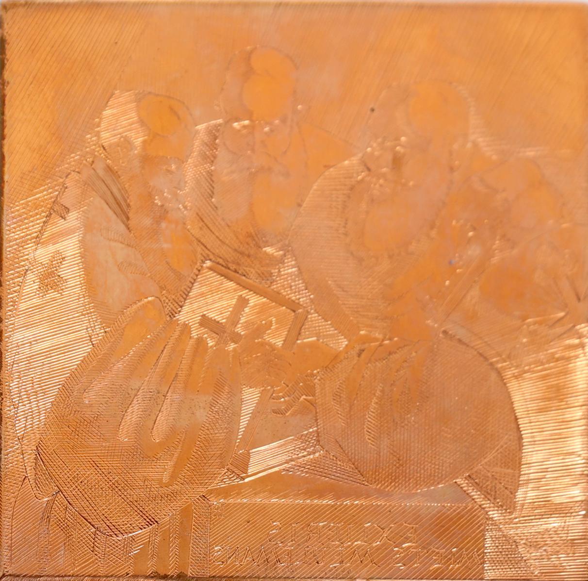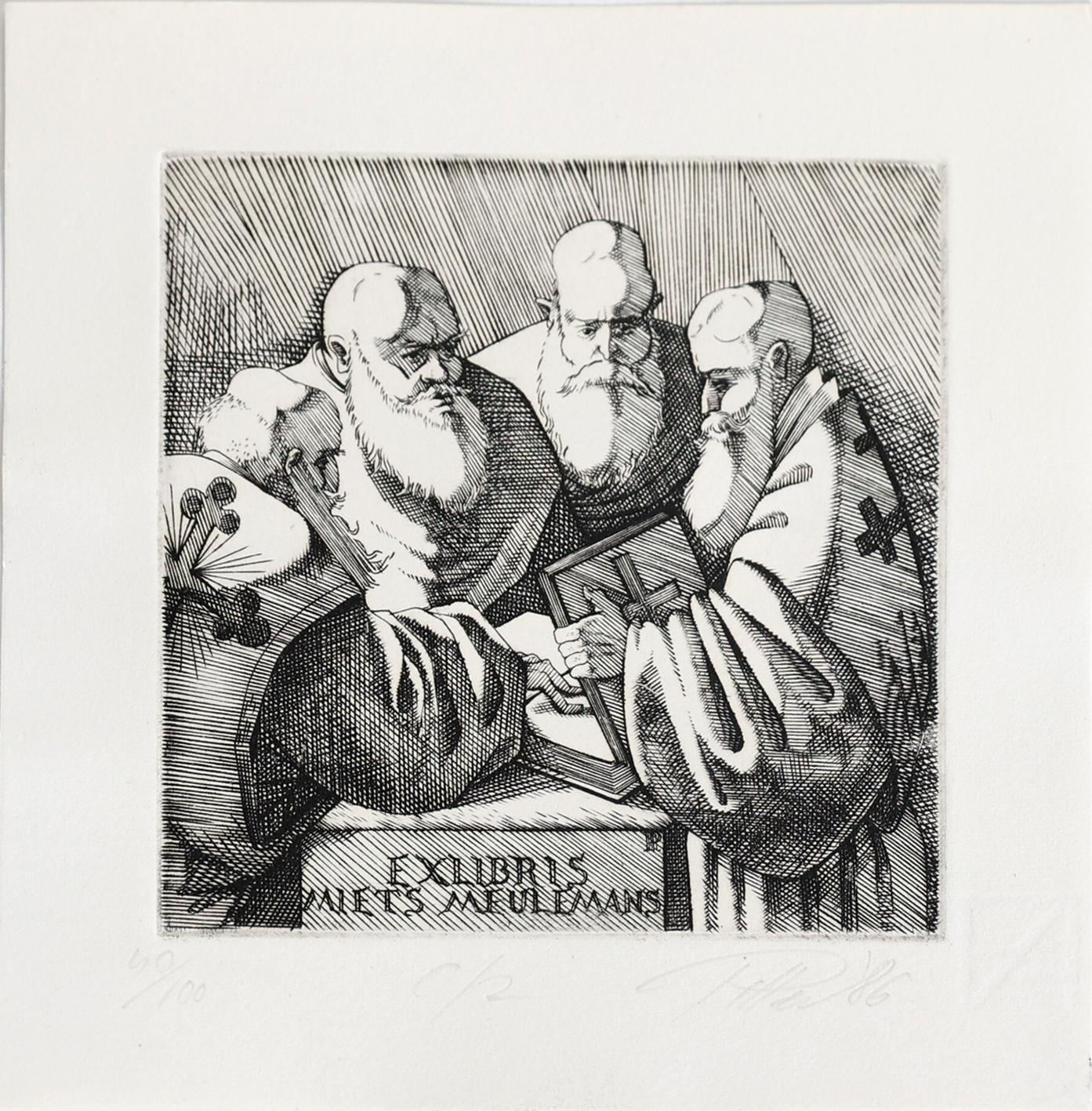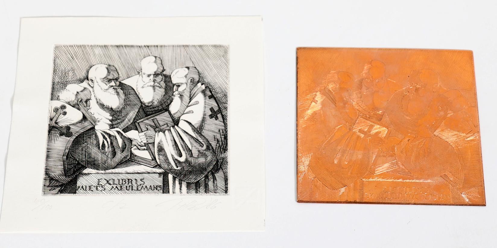 Piller, A., exlibris voor Meulemans, C3 (4 evangelisten), beelddrager plus afdruk