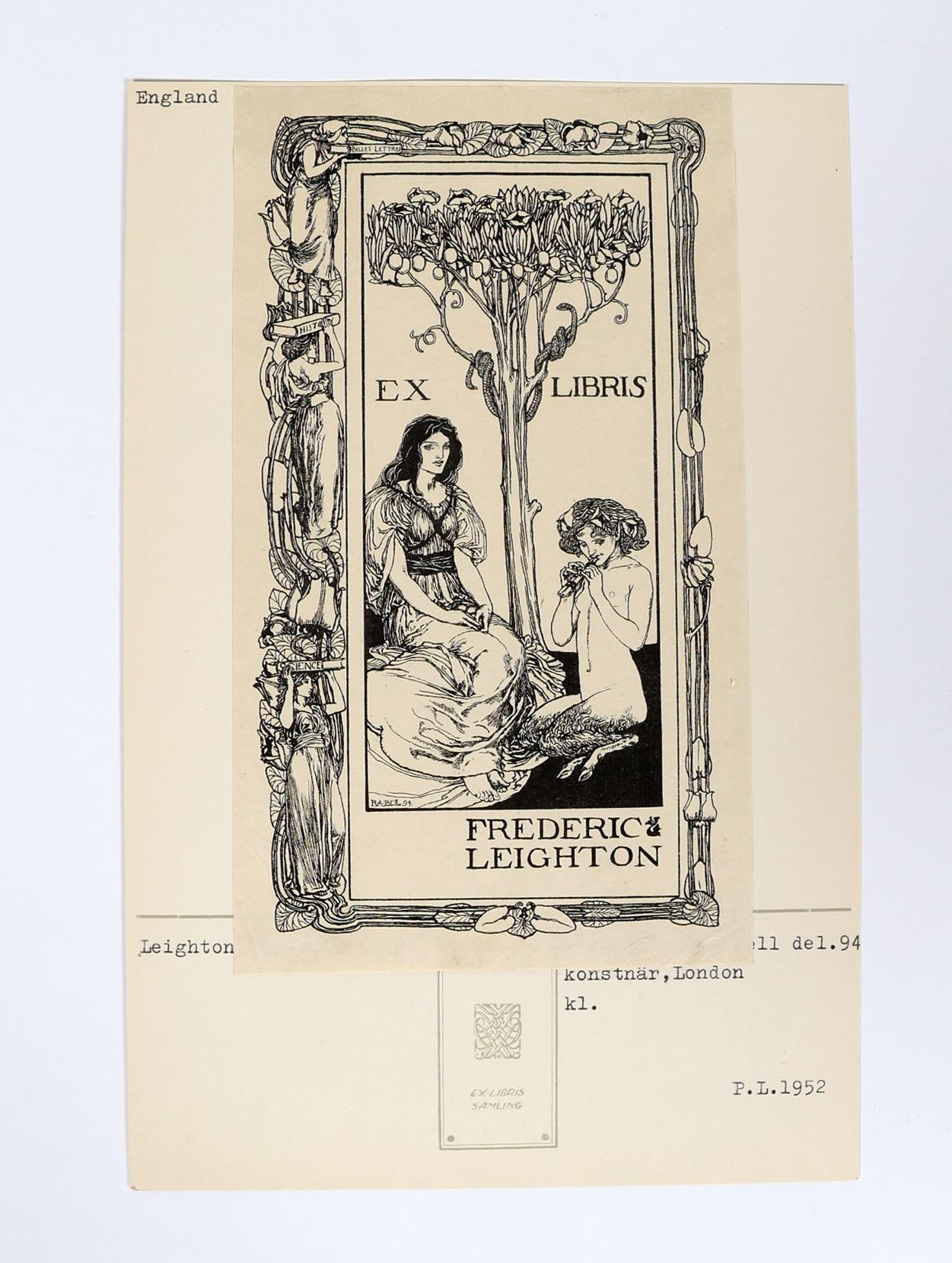 Robert Anning Bell, 3 exlibris (Frederic Leighton, Scholae Felstednis, Walter Lloyd), niet gesigneerd, cliché, opgeplakt (geweest)