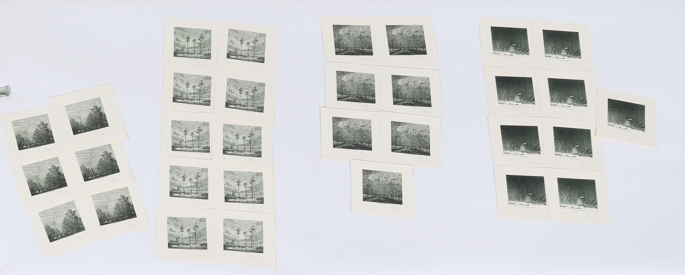 Kalynovich, K, 4 exlibris voor Meulemans (4 jaargetijden), C3, genummerd en gesigneerd, restoplagen, in totaal plm. 30 stuks