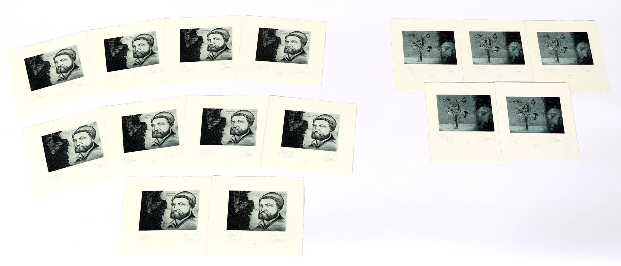K. Kalynovich, 2 exl. voor Meulemans ('Hieronymus Tree', 'admirer of Holbein'), C3C5, genummerd en gesigneerd, in totaal plm. 15 stuks (restoplagen)