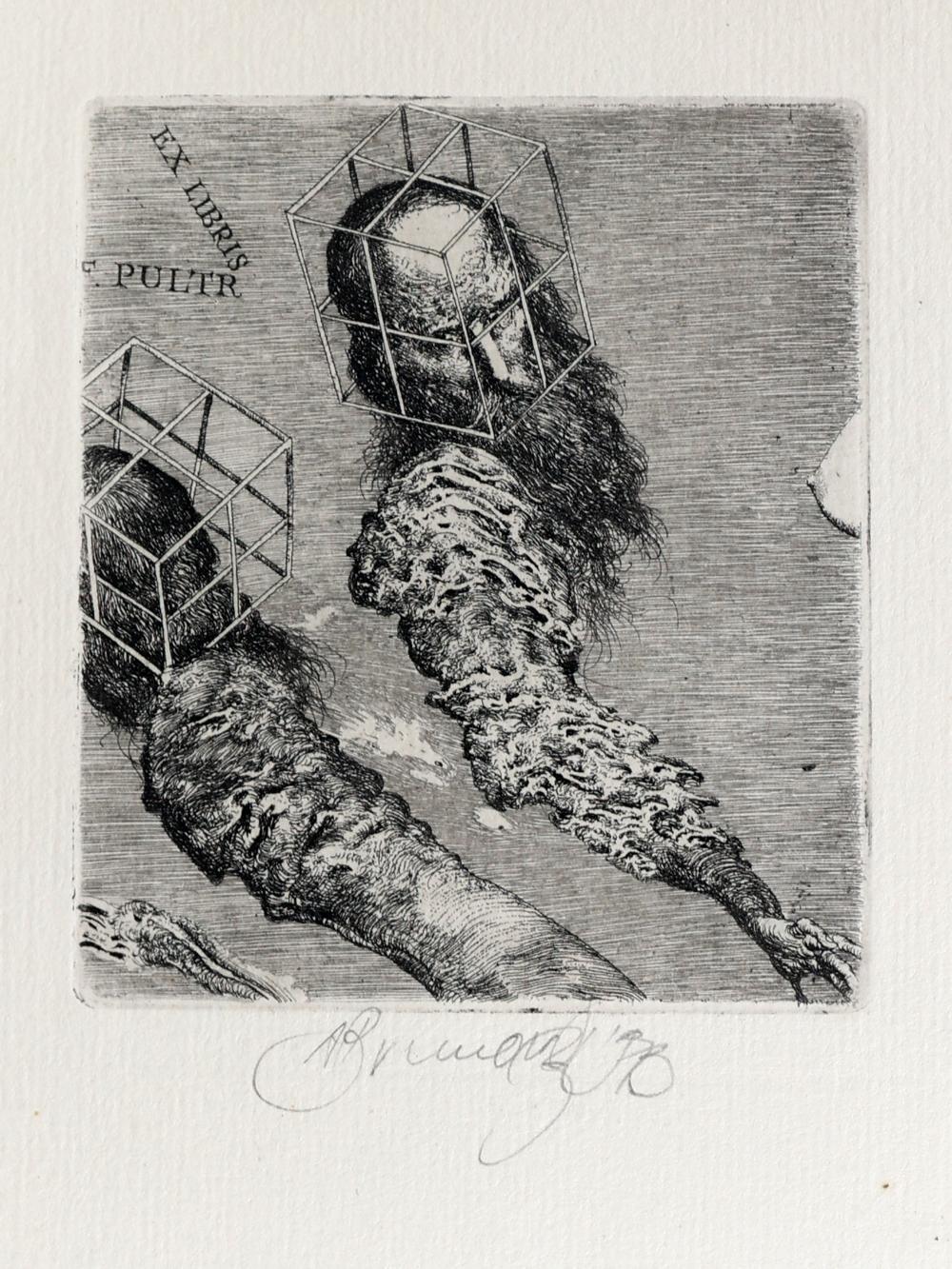 Brunovsky, A., exlibris voor F. Pultr, C3, 1973, gesigneerd, 90 x 77 mm, opgeplakt