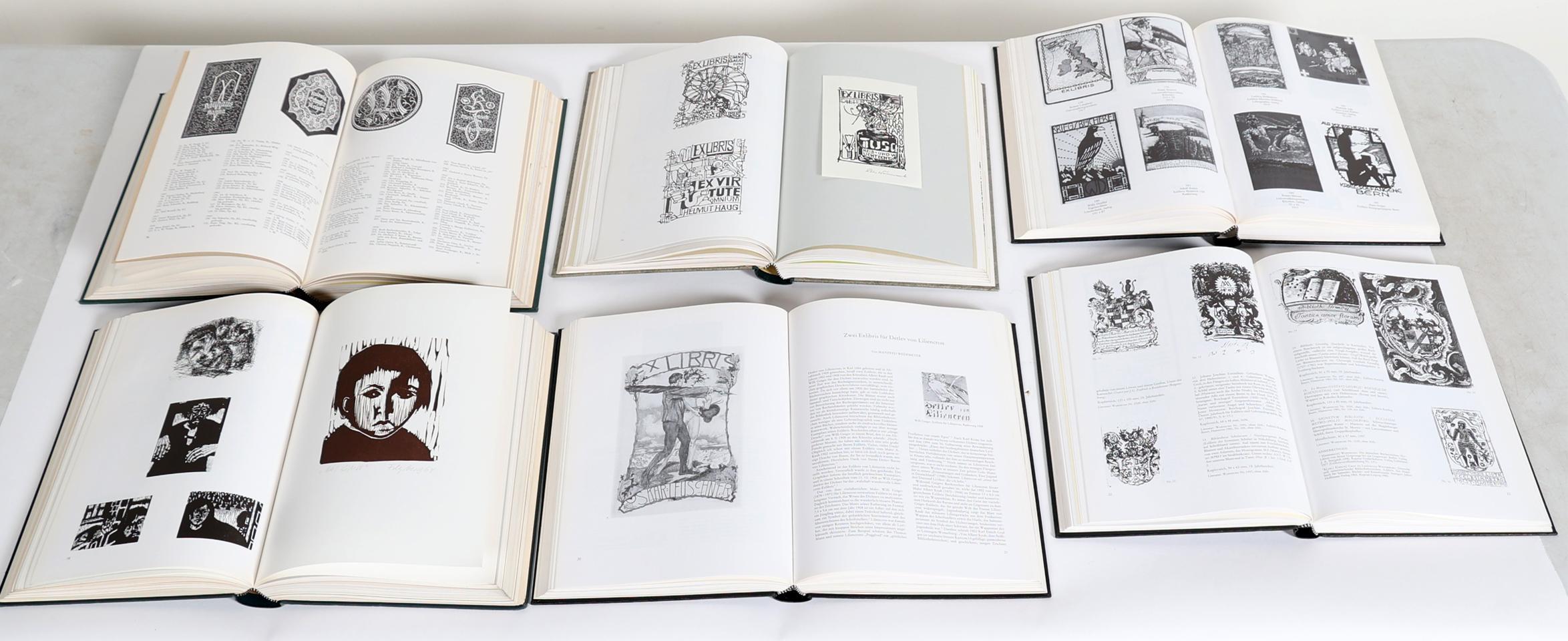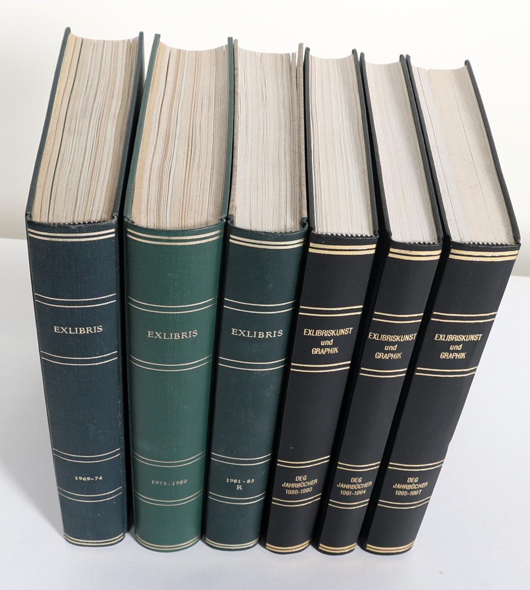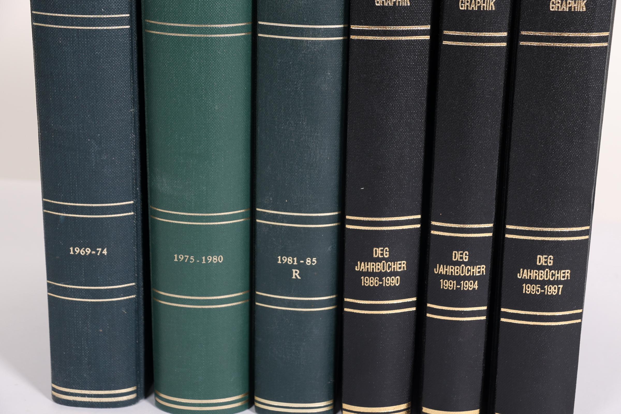 'Exlibriskunst und Graphik, DEG-Jahrbuecher 1969 - 1997', ingebonden in 6 delen, met veel originele grafiek.