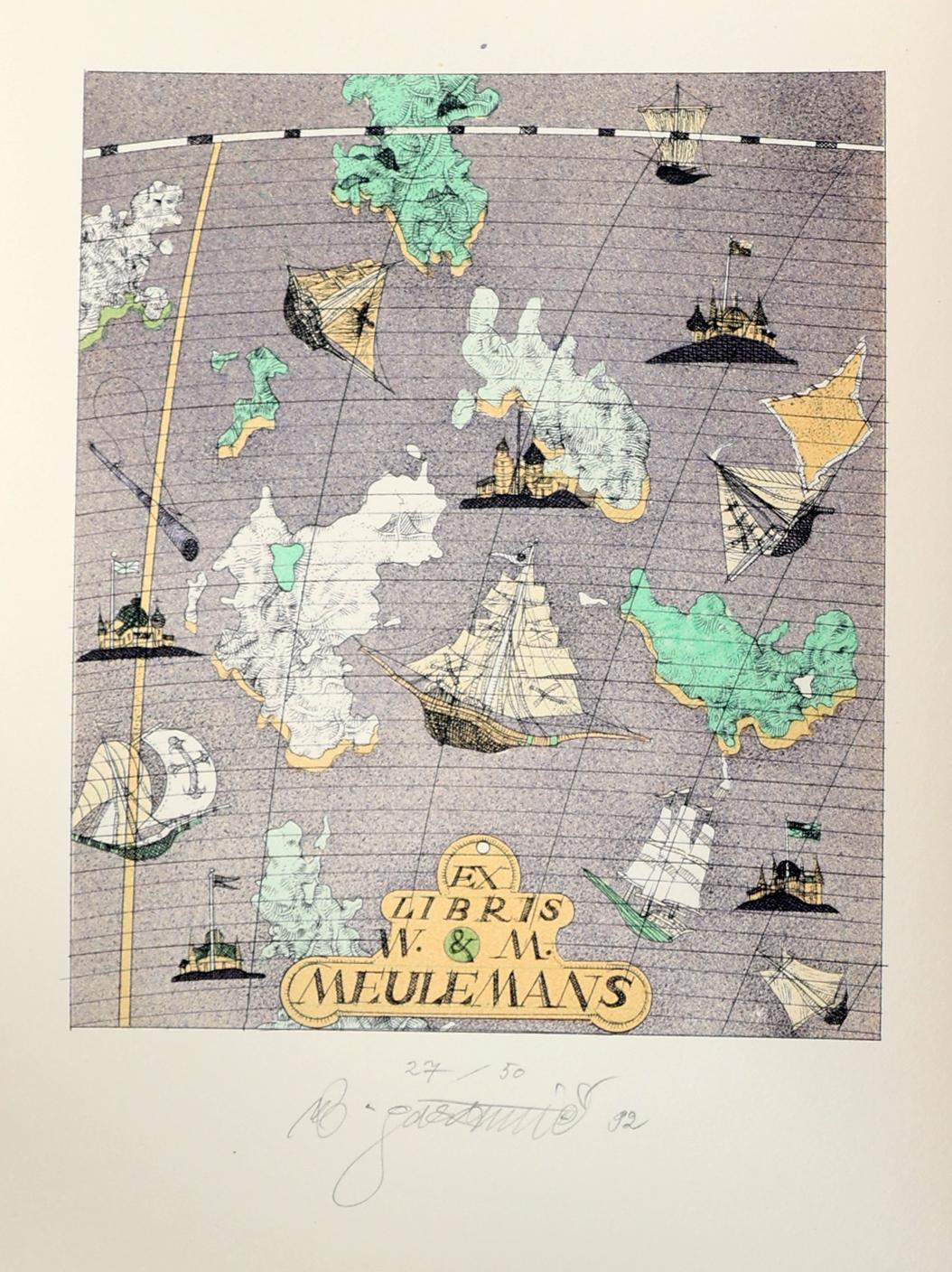 Gazovich, Vl., 3 exlibris, (Meulemans, Panenka, ?), meerkleurenlithoś, genummerd en gesigneerd
