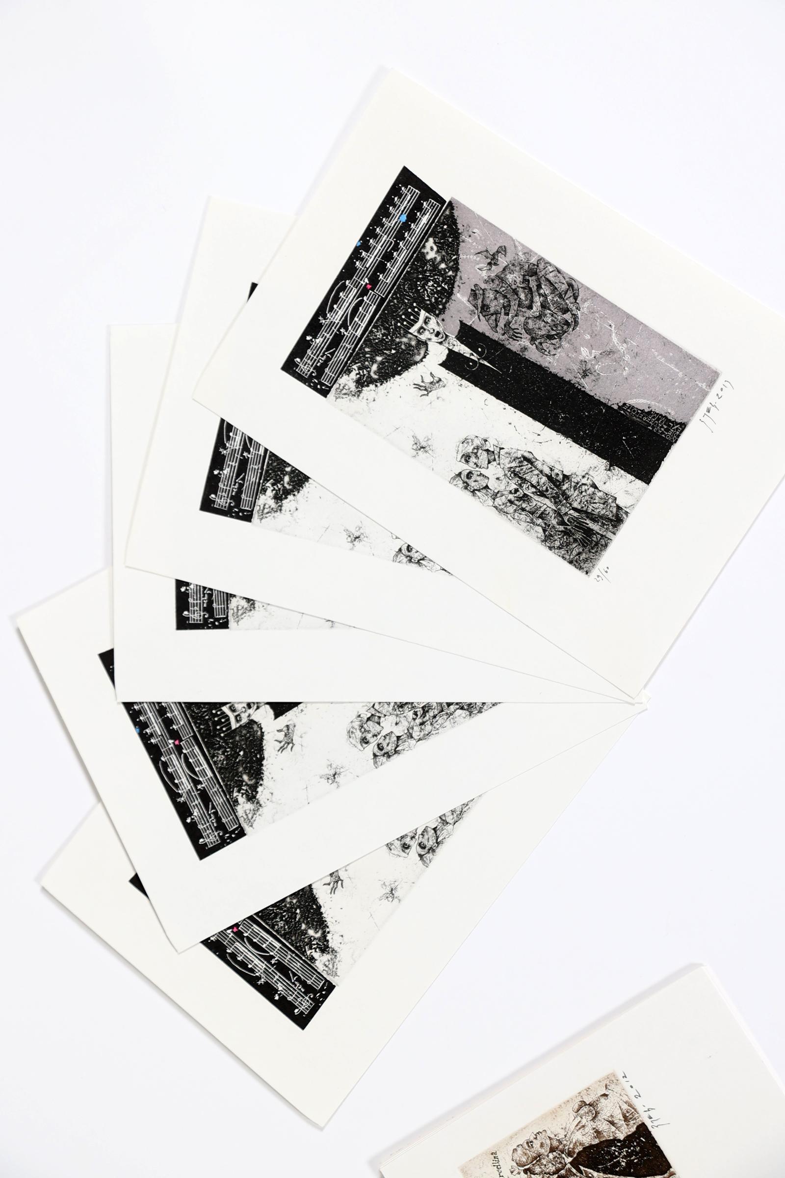 Zuev, V., 3 exlibris op naam van Meulemans, restoplagen (5 x Zauberfloete', 8 x 'Norma', 13 x 'La Nozze di Figaro'). Totaal 26 stuks, MT, gesigneerd, genummerd