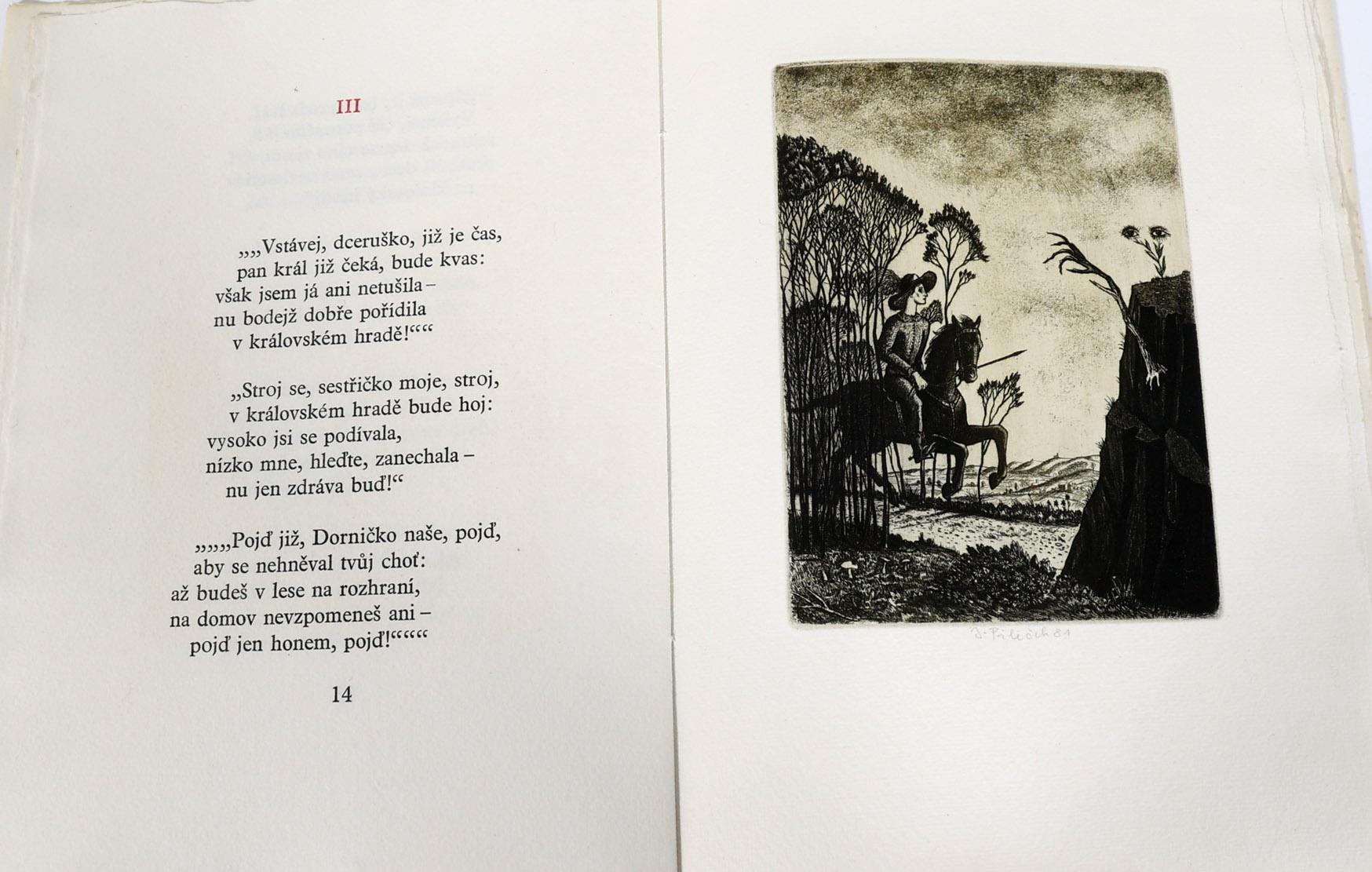Pilecek, J., 4 etsen (gesigneerd) in: "Zlaty kolovrat", Karel J. Erben, Lyra Pragensis 1980, softcover, tekst in Tsjechisch, no B81/200. Iets bevuild.