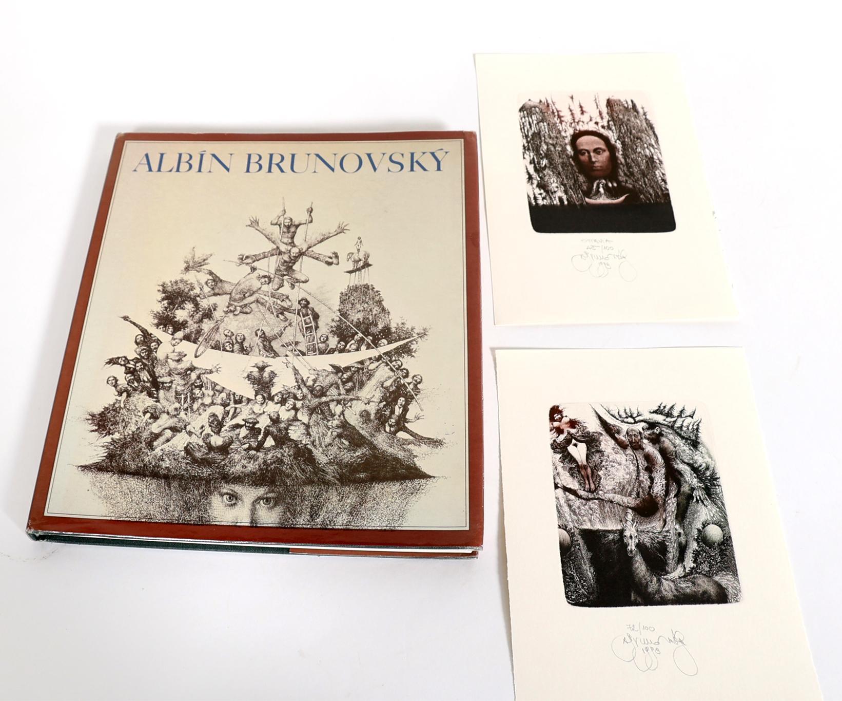 Brunovsky, A., 2 exlibris (Wout Meulemans, 1993, genummerd en gesigneerd, 1993, 'unicorn', 130x100 mm, plus: Miets Meulemans, 1993, genummerd en gesigneerd, C3, 'ottavia'.) Toegevoegd: 'Albin Brunovsky', Ludmilla Peterajova, Tatran, Bratislava.