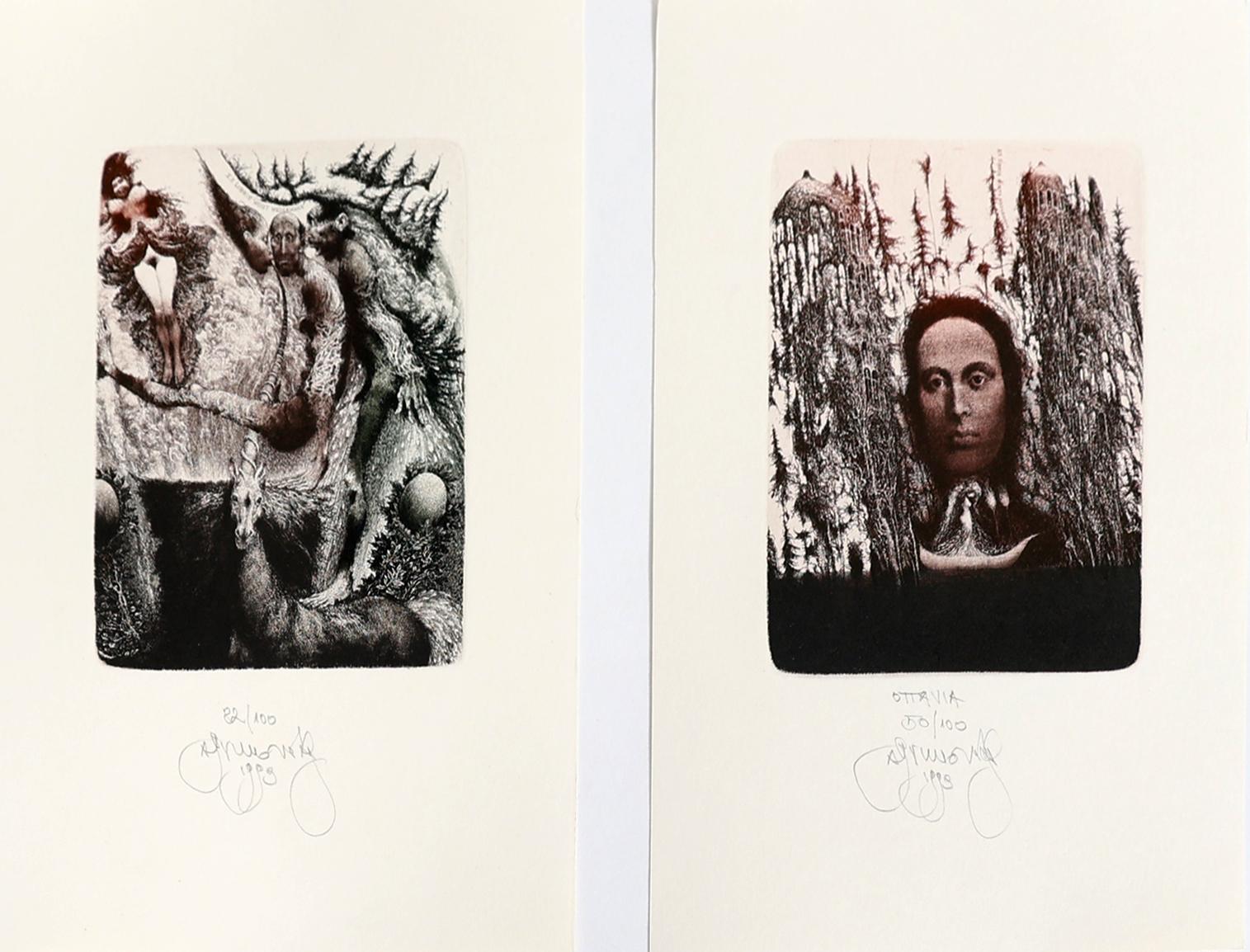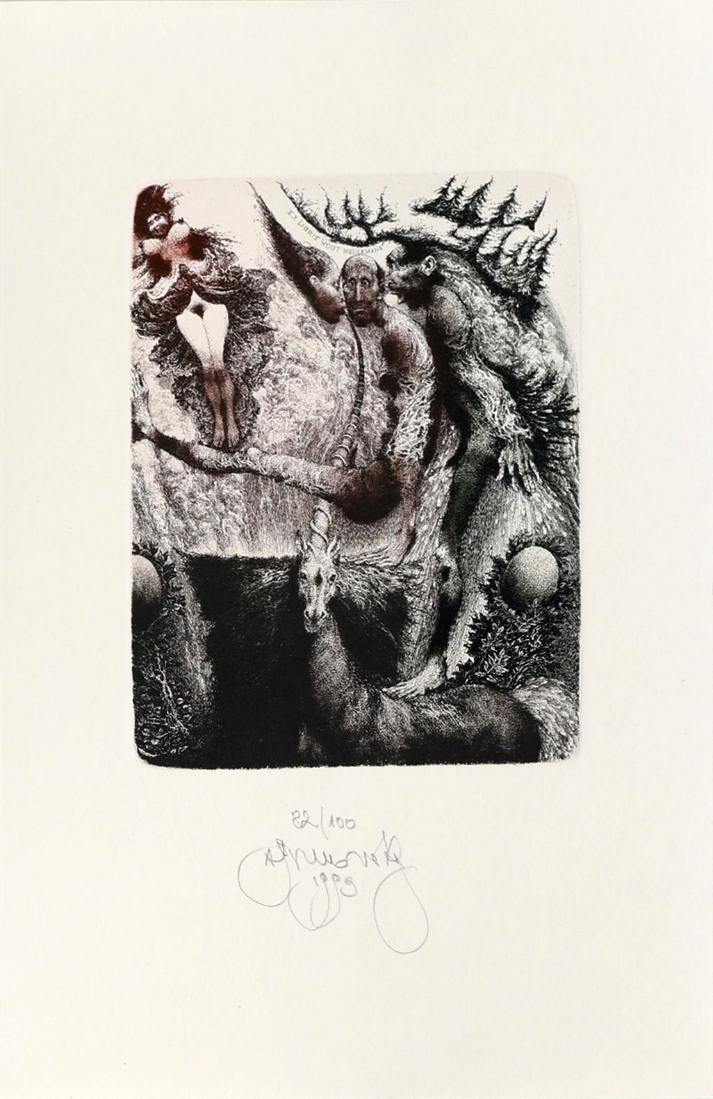 Brunovsky, A., 2 exlibris (Wout Meulemans, 1993, genummerd en gesigneerd, 1993, 'unicorn', 130x100 mm, plus: Miets Meulemans, 1993, genummerd en gesigneerd.
