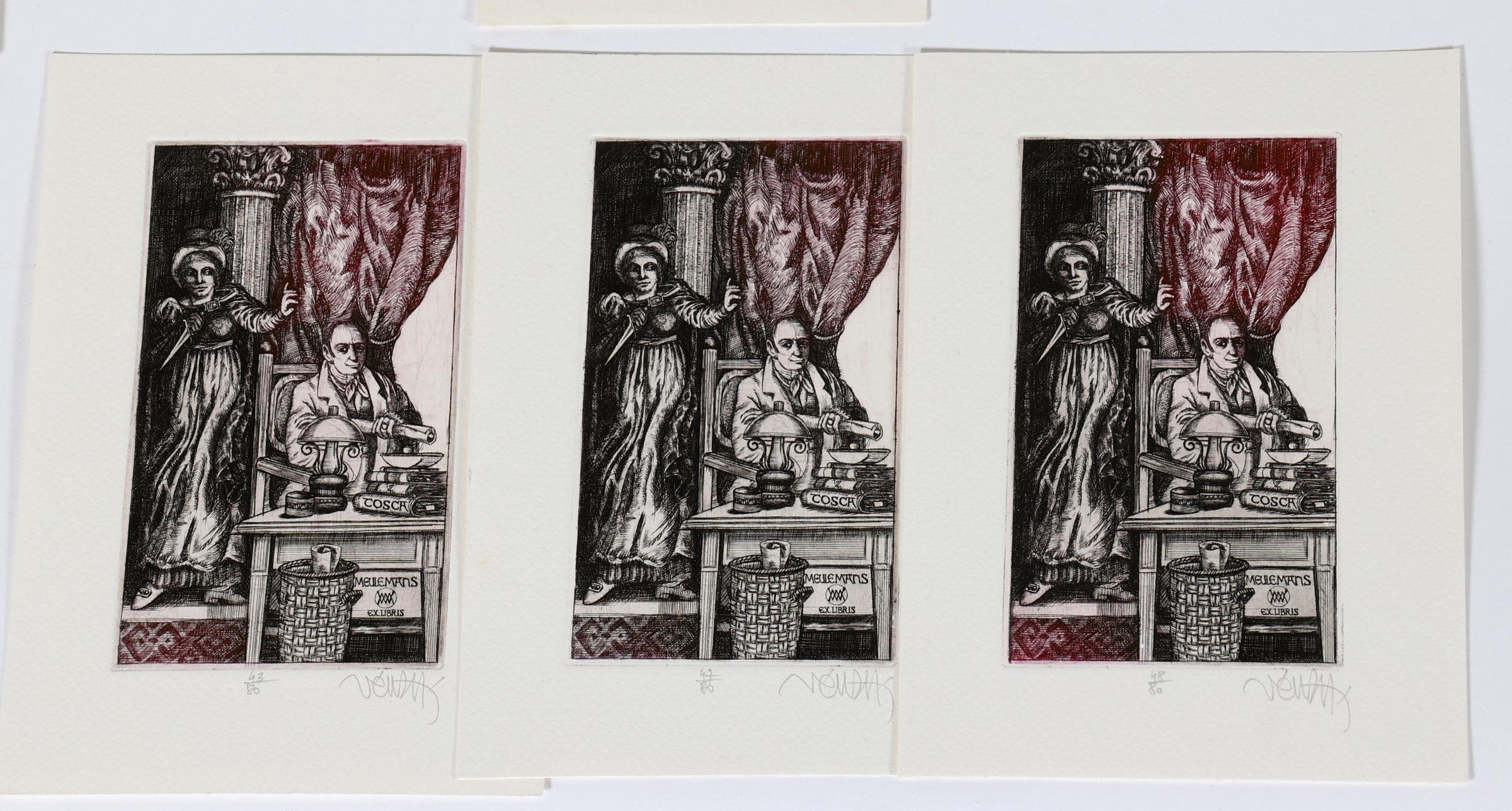 Ven, Z. plm. 35 exlibris op naam van Meulemans, C3, gesigneerd, enkele met correspondentie van Ven op de achterzijde van de prent. Meerdere doubletten, restoplagen.