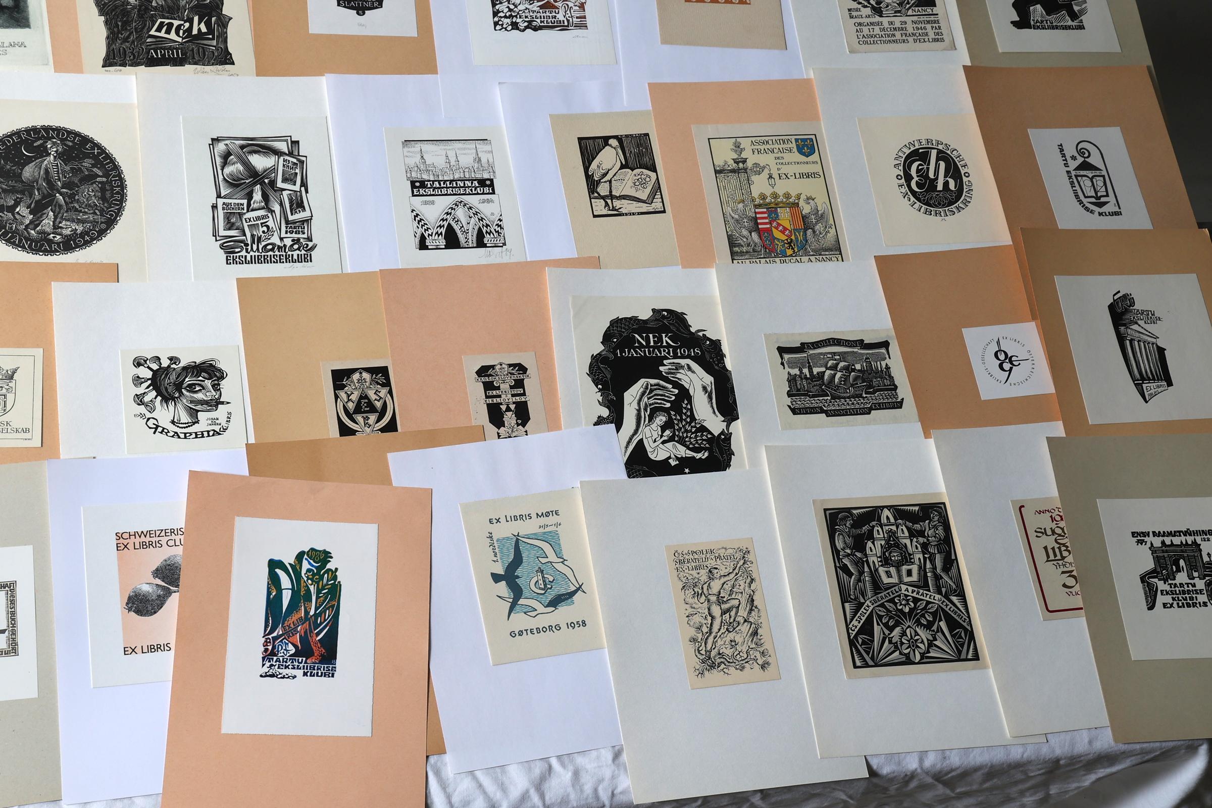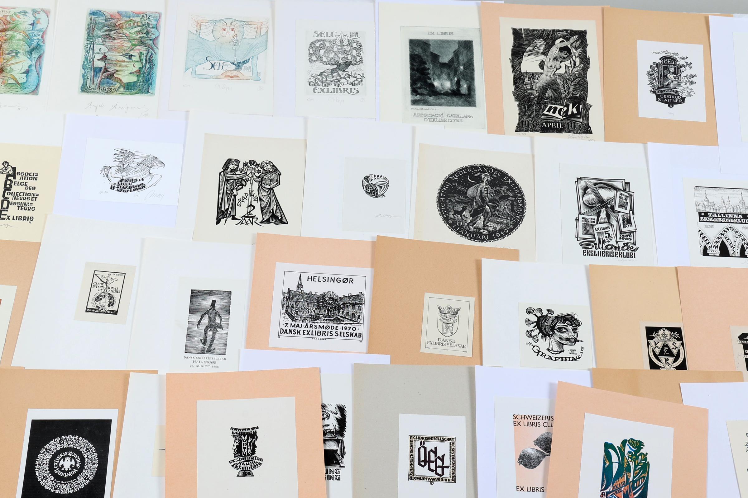 collectie van plm. 60 exlibris, thema: verenigingen / clubs. Plm. 50 x hoogdruk / vlakdruk, rest diepdruk.