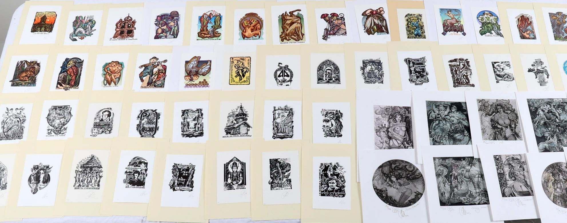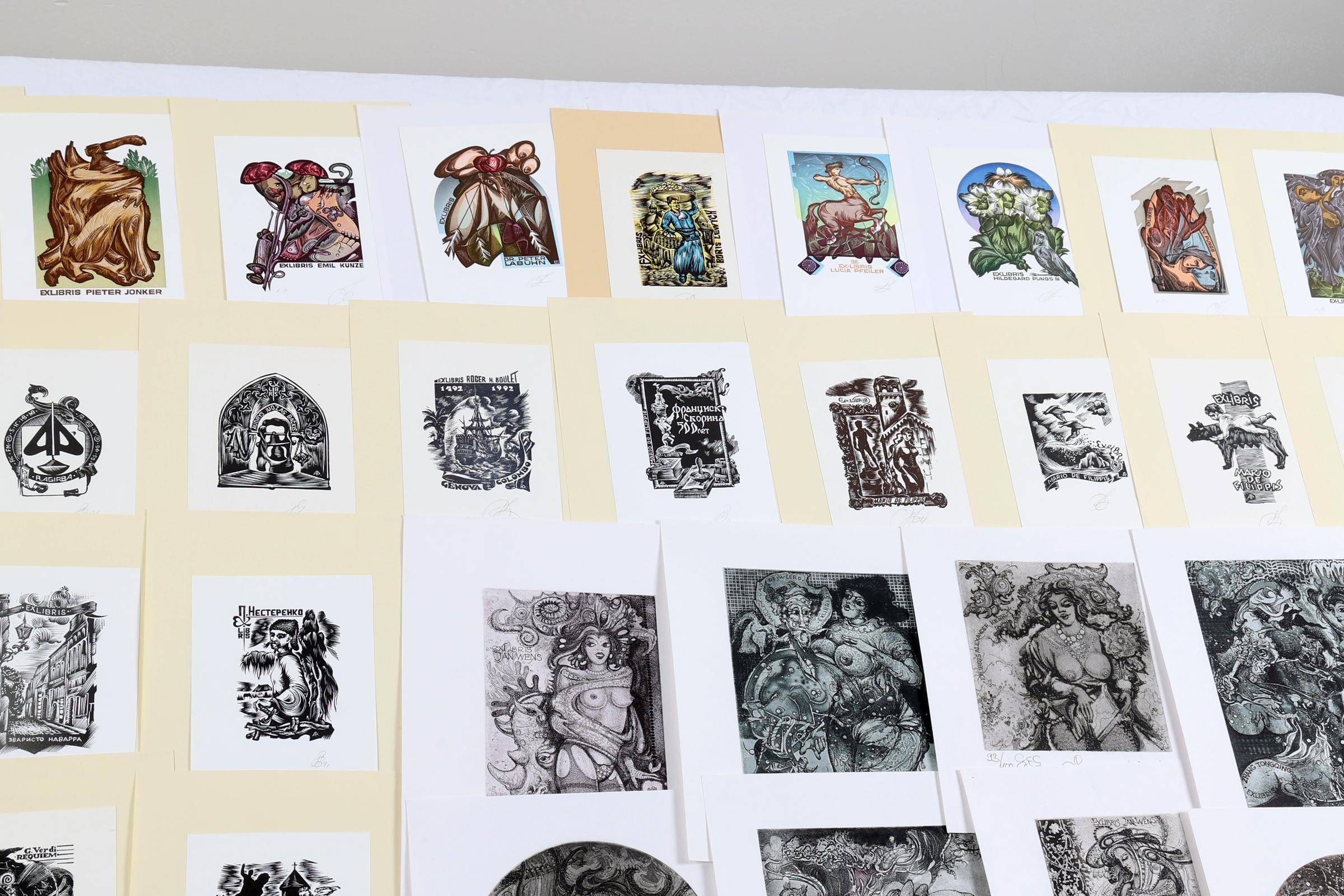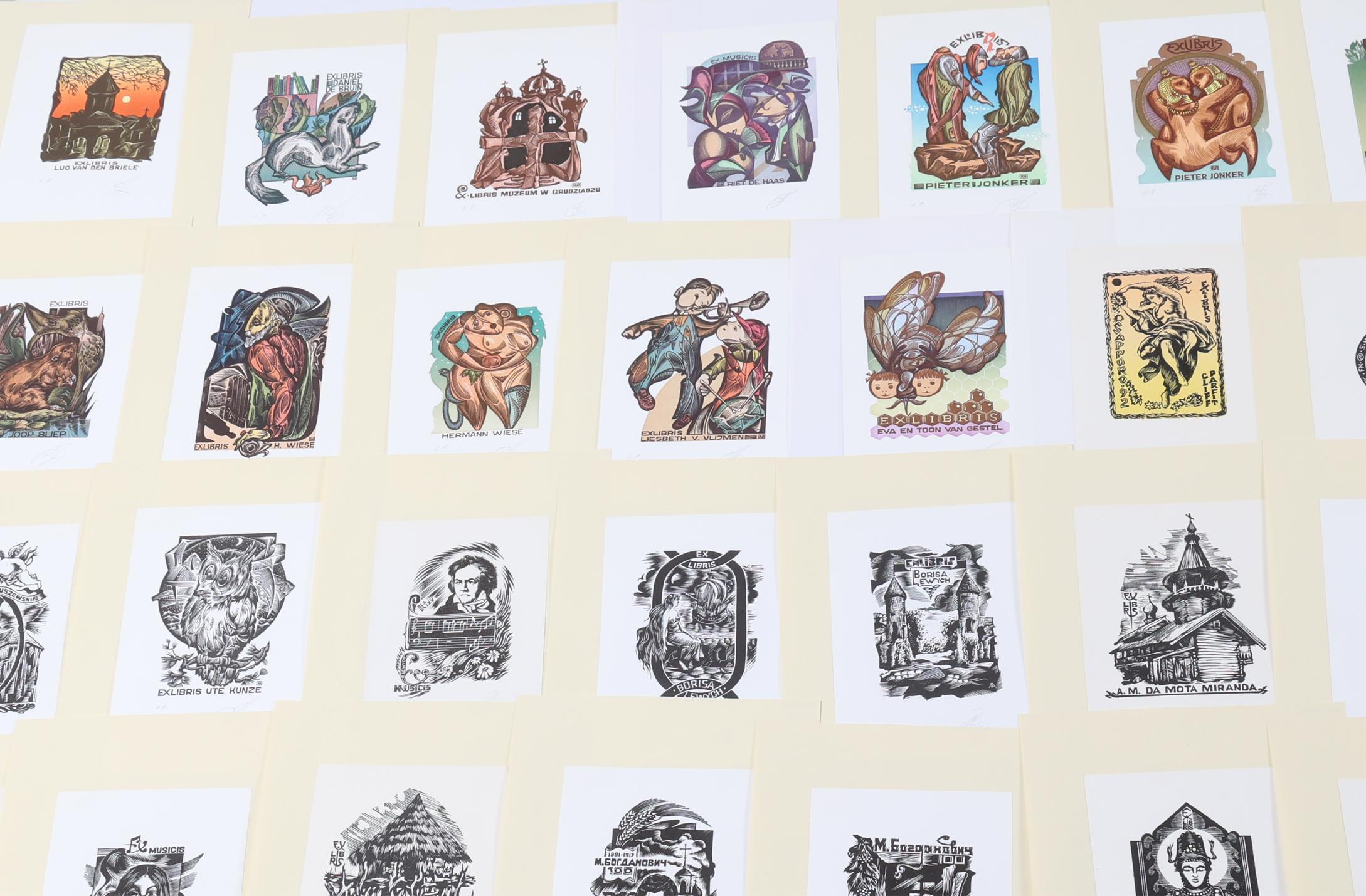 Agirba, R., plm. 50 exlibris, plm. 12 x diepdruk, rest hoogdruk (deels meerkleuren). Alle gesigneerd, deels genummerd. Voor o.a. Kerrutt, V.d. Weerd, Kriz, Wens, Zhang, Frigo, Yloenen.