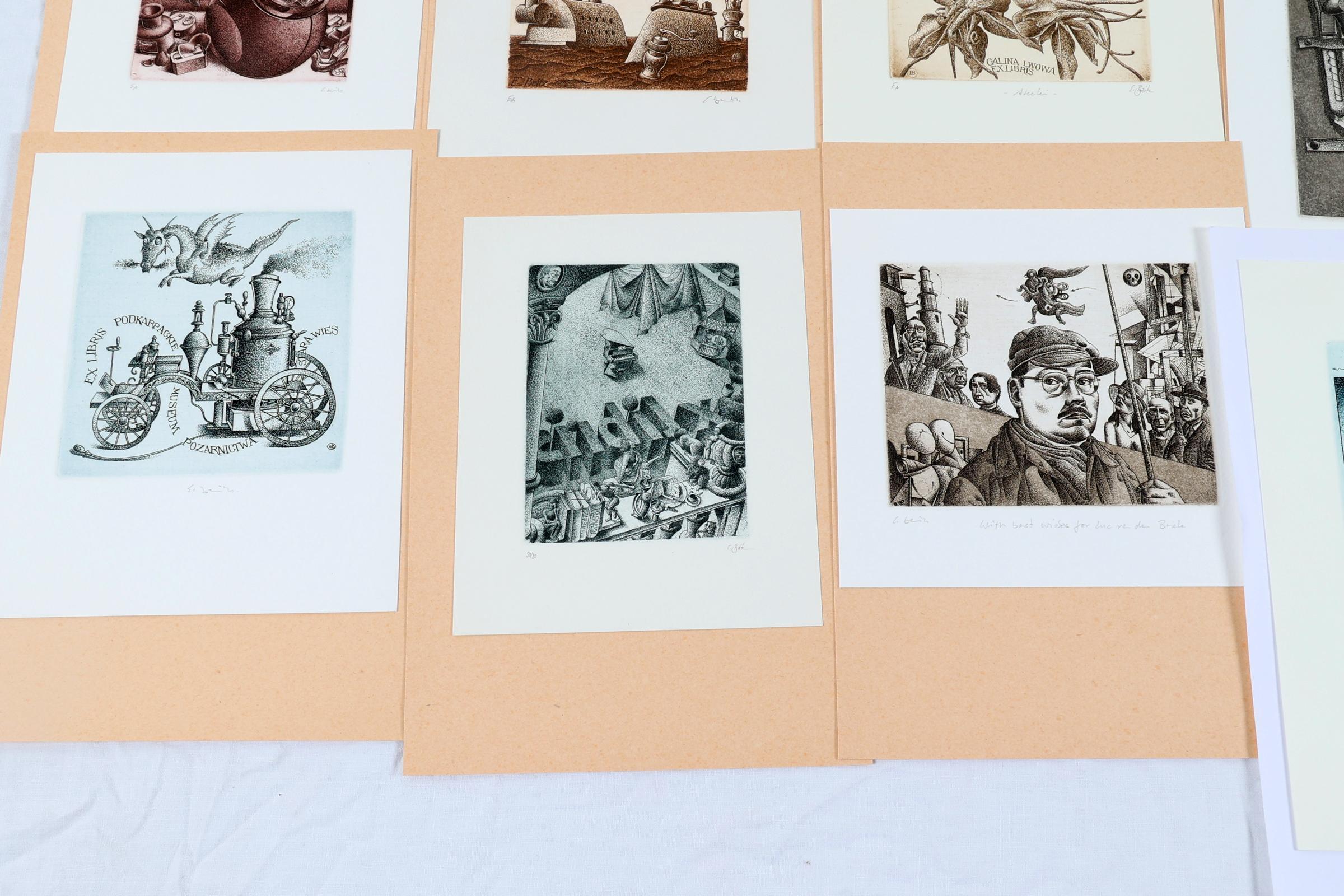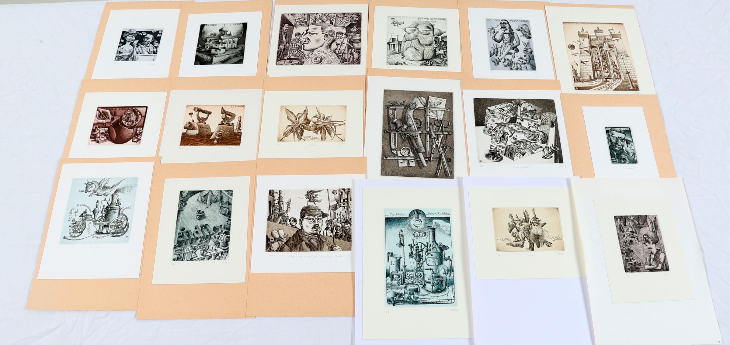 Beitz, E., plm. 18 exlibris (1 x gelegenheidsgrafiek), diepdrukken, alle gesigneerd, opgeplakt. Voor o.a. Beitz, Brendicke, Lwowa, Hubert, Moede, Kabelitz.