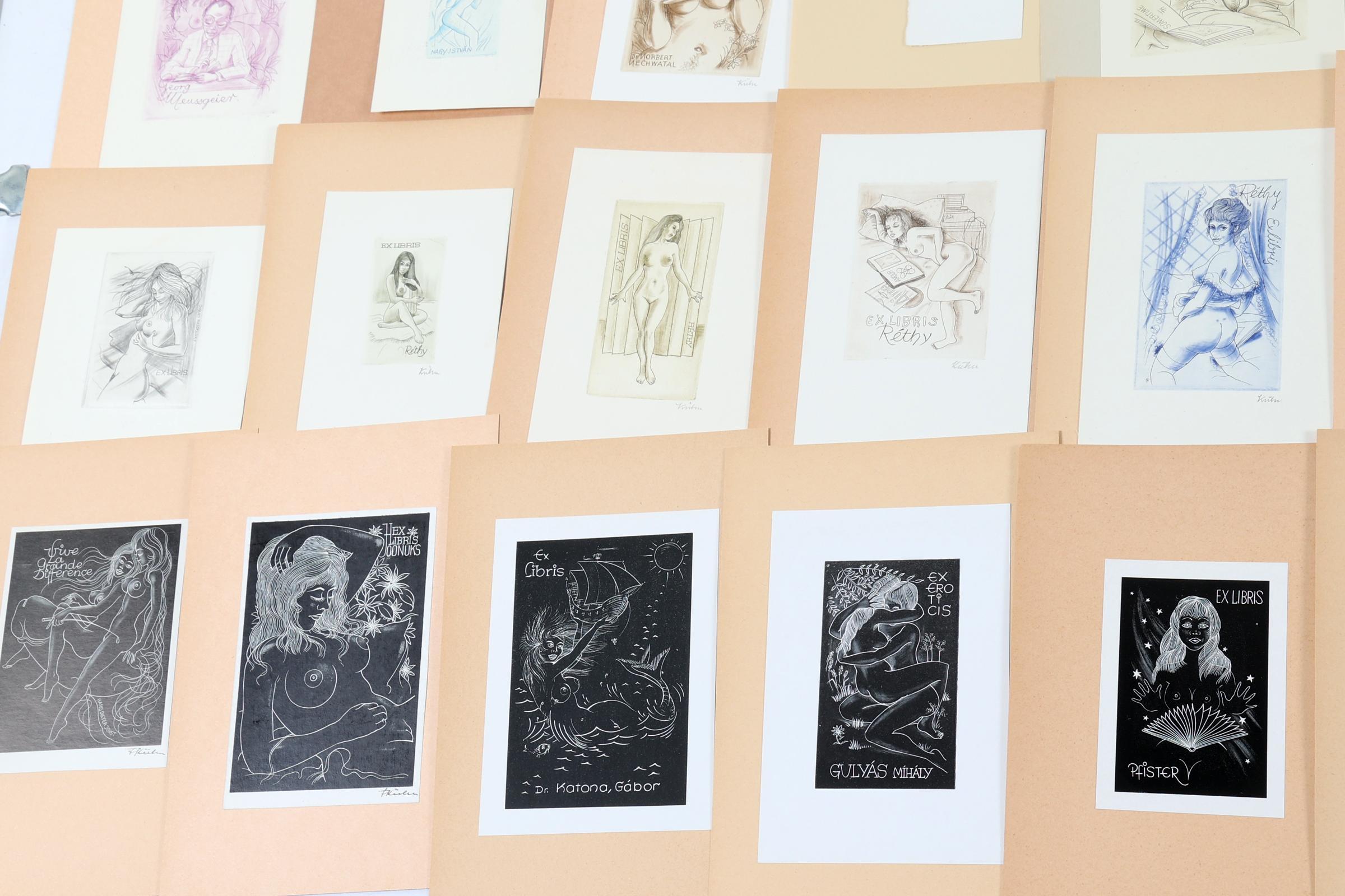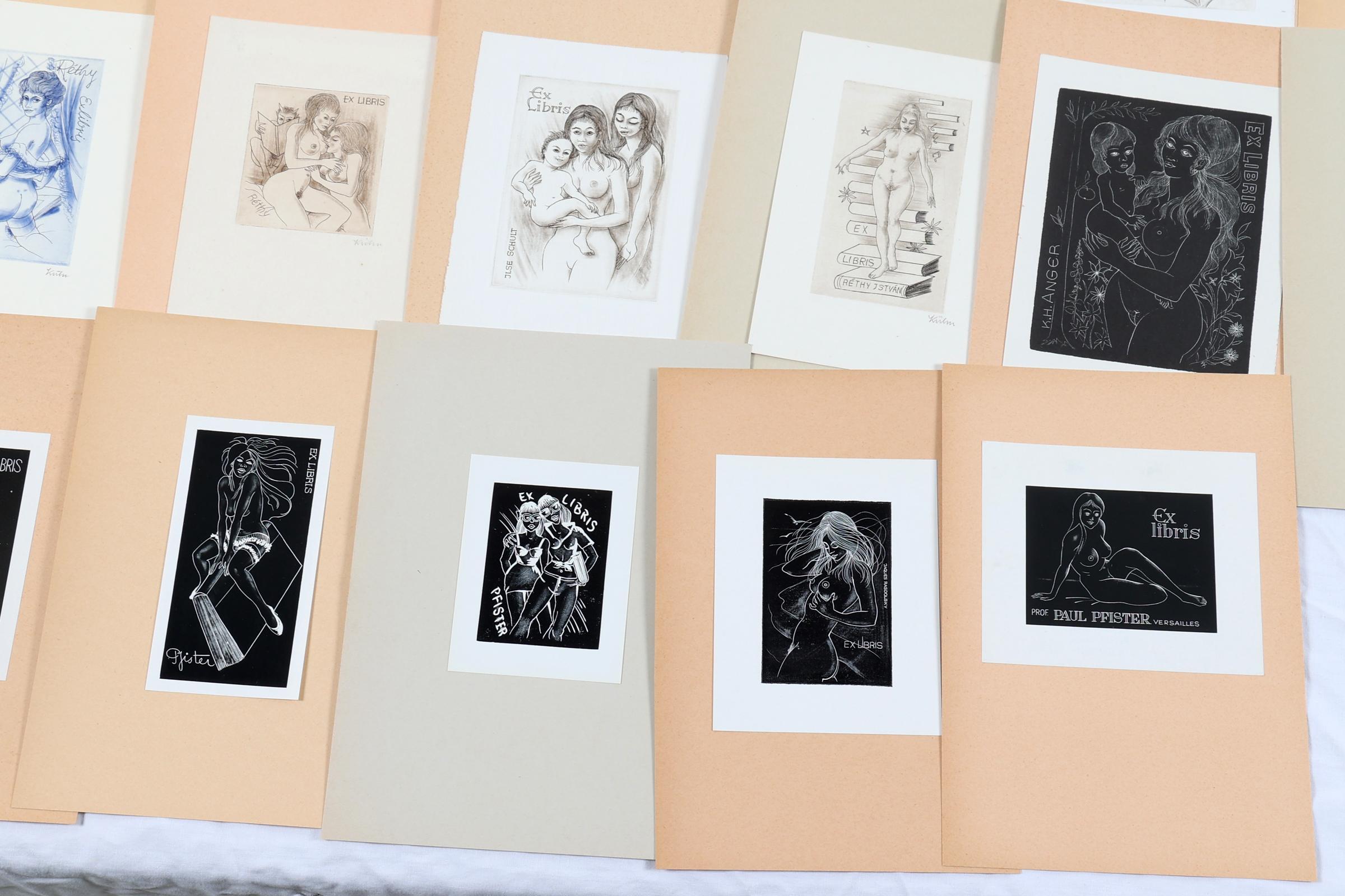 Kuehn, Fr., plm. 50 exlibris(36 x diepdruk, 15 x hoogdruk), thema: erotiek / naakt. Plm. 17 x gesigneerd. Opgeplakt.