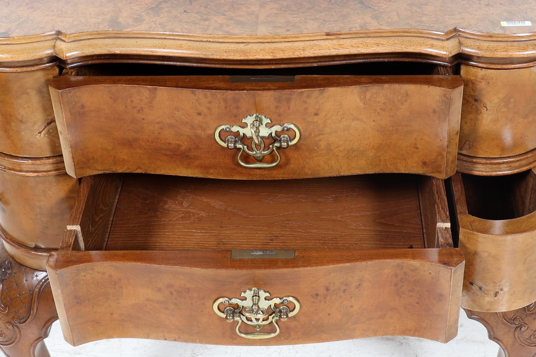 Oude wortelnotenhouten commode met 6 laden rustend op klauwpoten, Chippendale-stijl, h.76 x b.77 x d.51 cm.