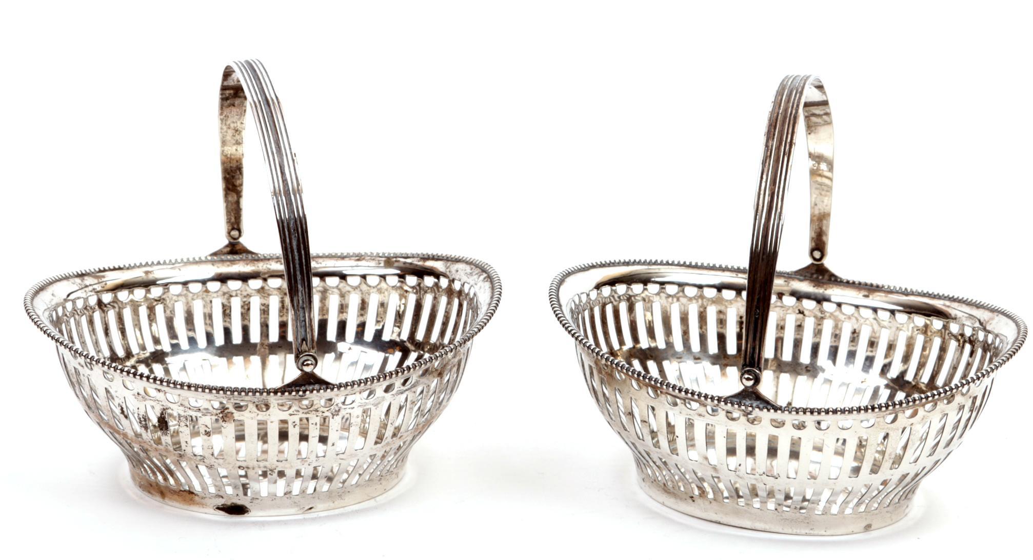 Twee opengewerkte 2e gehalte zilveren bonbonschaaltjes, 188 gram