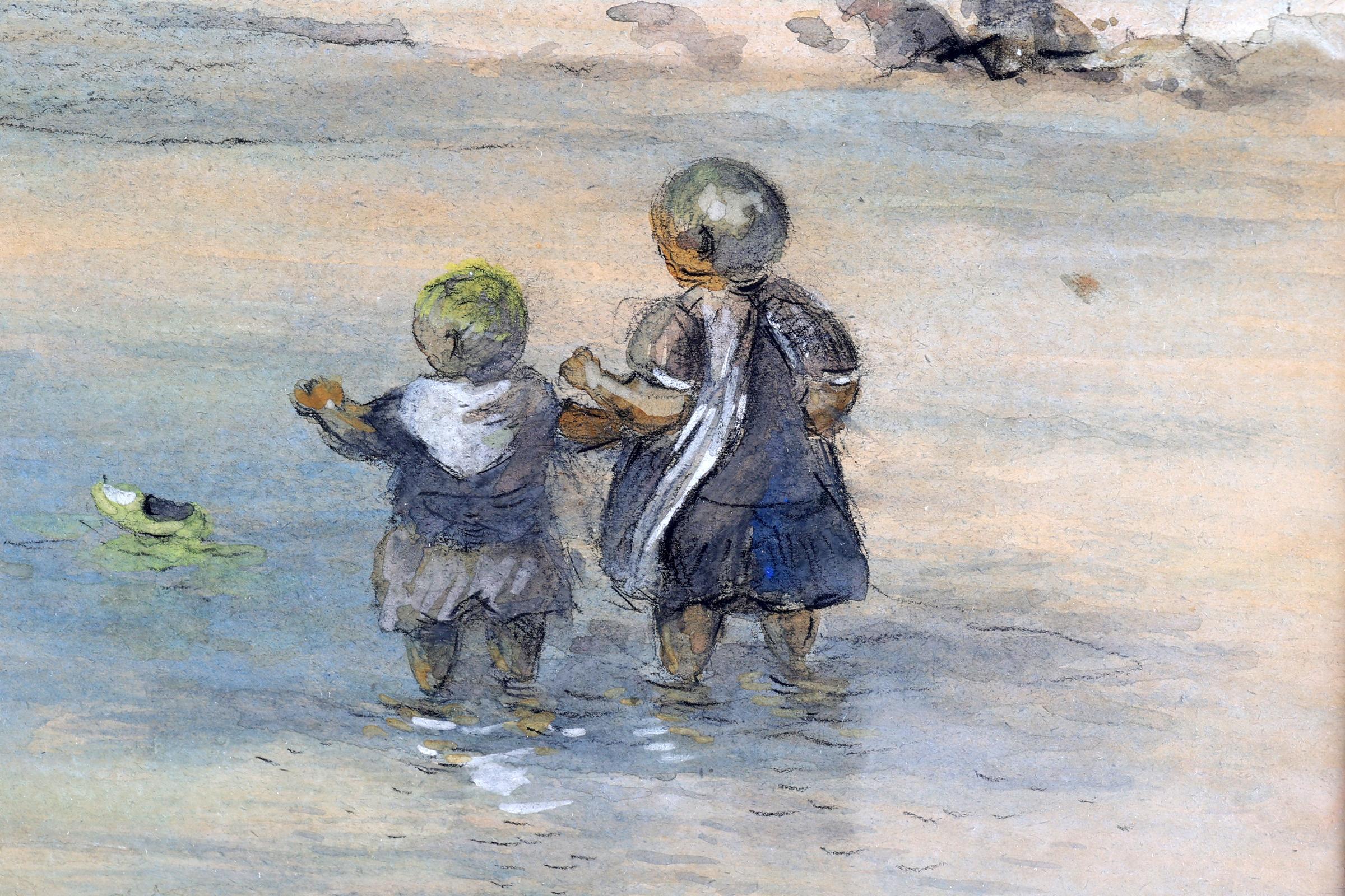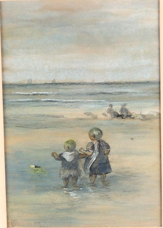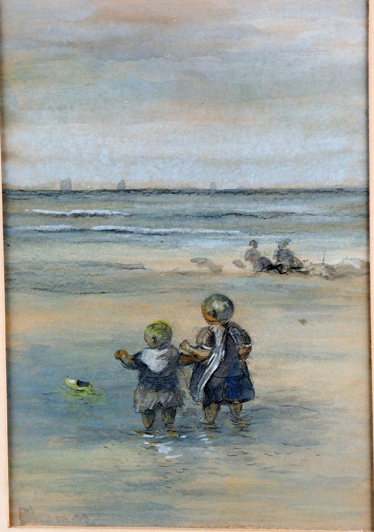 Bernardus Johan Blommers, Den Haag 1845-1914 Den Haag, Kindjes op het strand, aquarel, 34 x 23 cm.