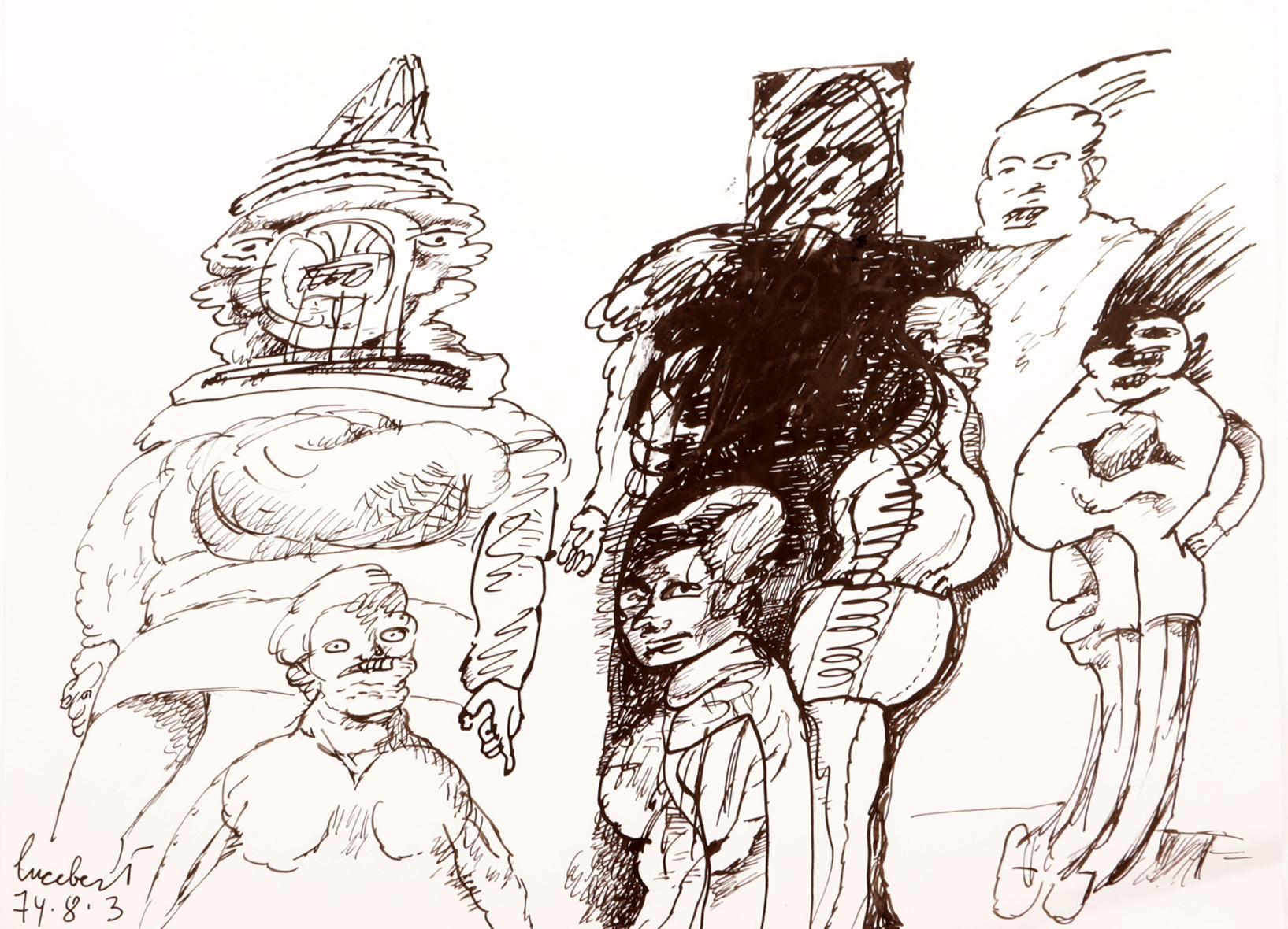 'Lucebert' alias van Lubertus Jacobus Swaanswijk (1924-1994), Diverse personen, originele inkttekening, 27 x 21 cm., gesign. en genummerd 74.8.3.