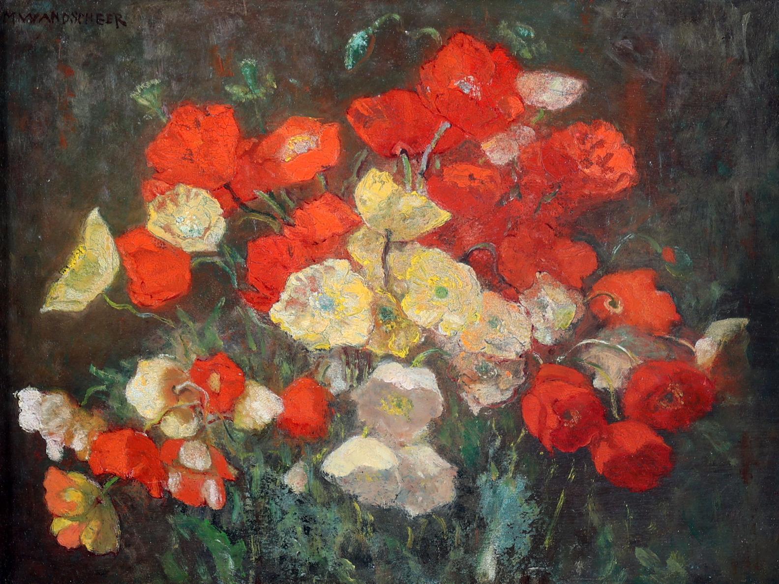 Marie Wandscheer (1856-1936), Papavers, olieverf op paneel, 30,5 x 40 cm., gesigneerd l.b.
