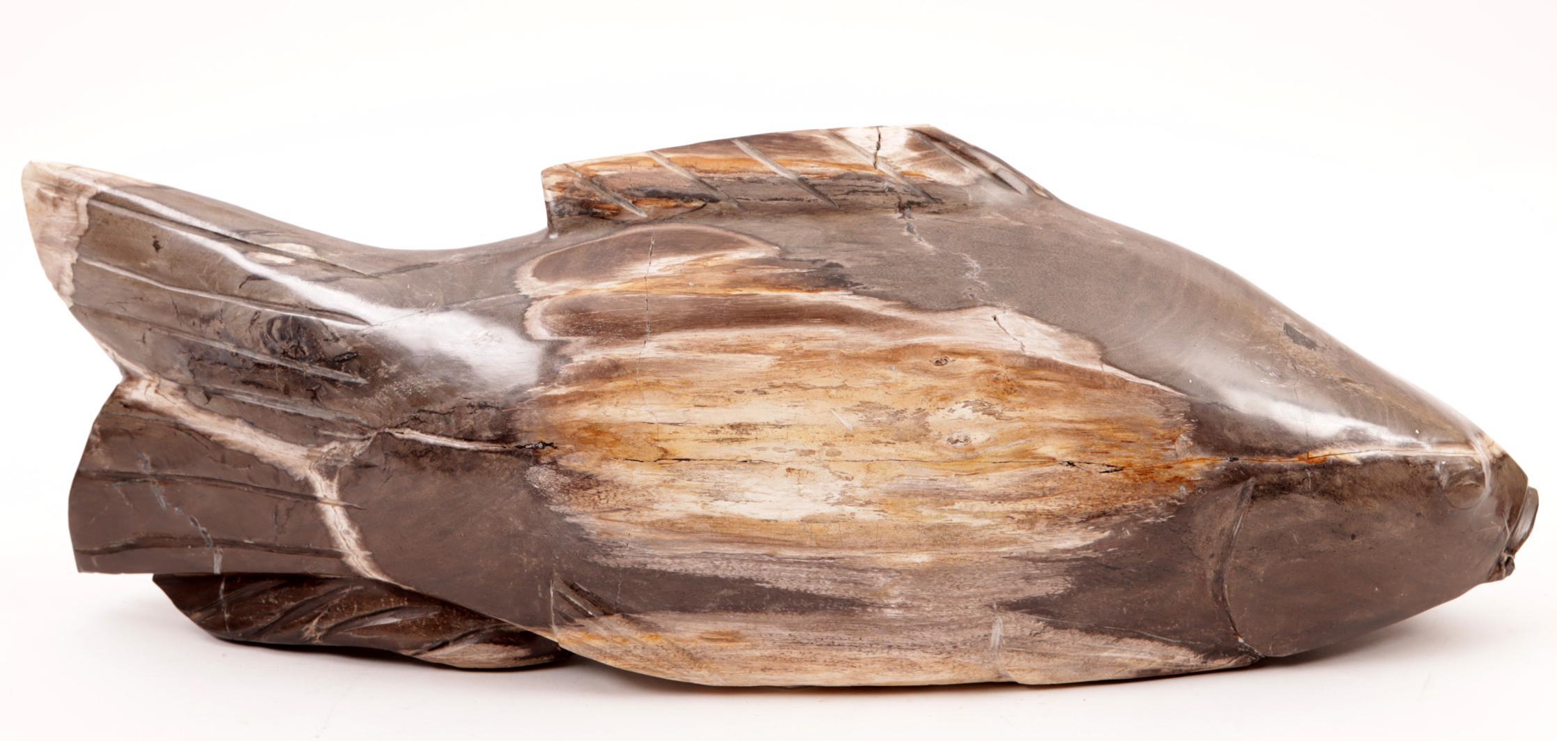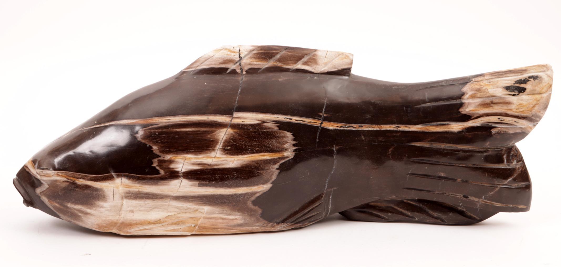 Versteende houten vis, L.53 cm.