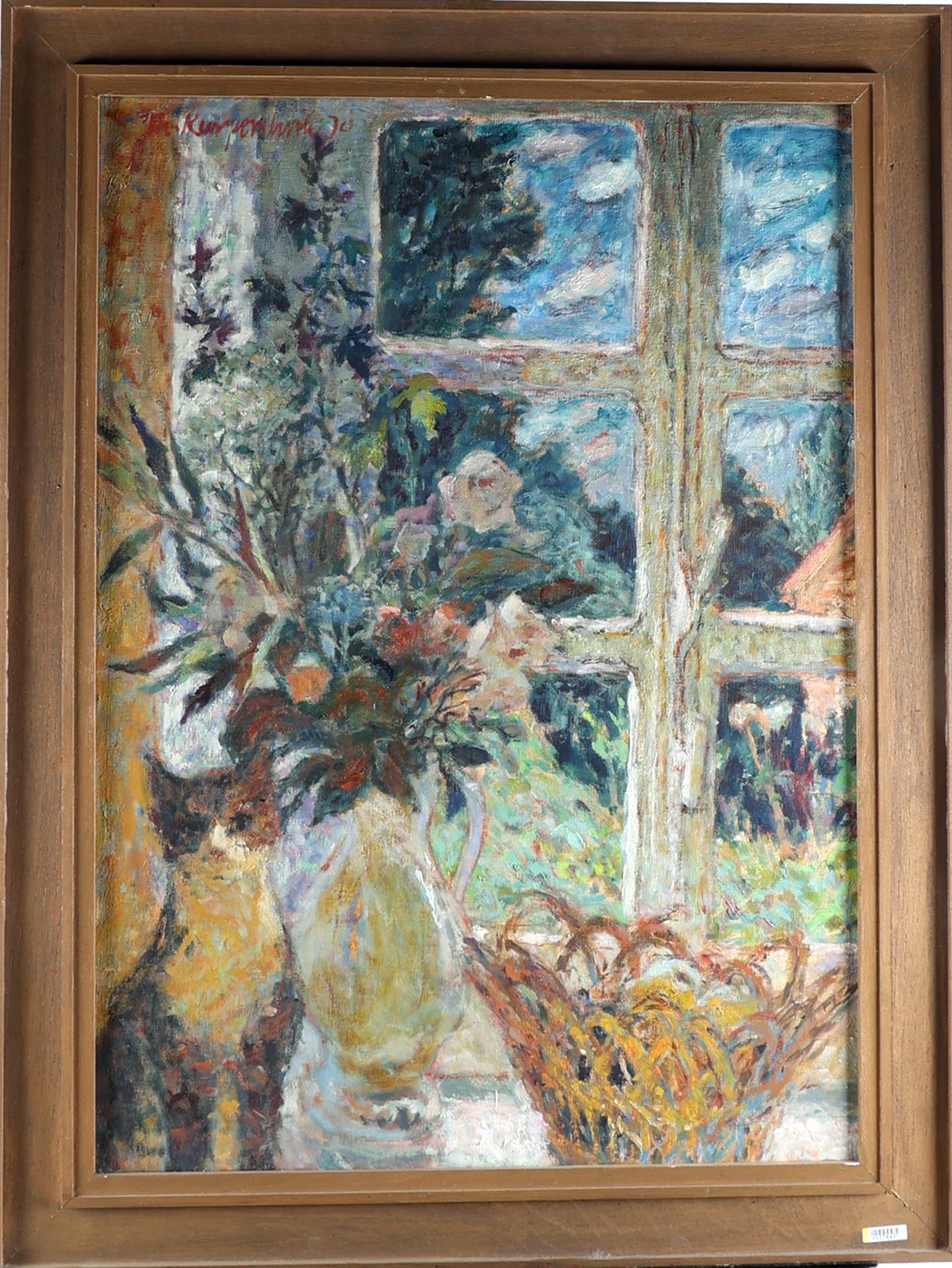 Theo Kurpershoek (1914-1998), Boemstilleven met doorkijk op landschap, olieverf op doek, 78 x 56 cm., gedateerd 1970