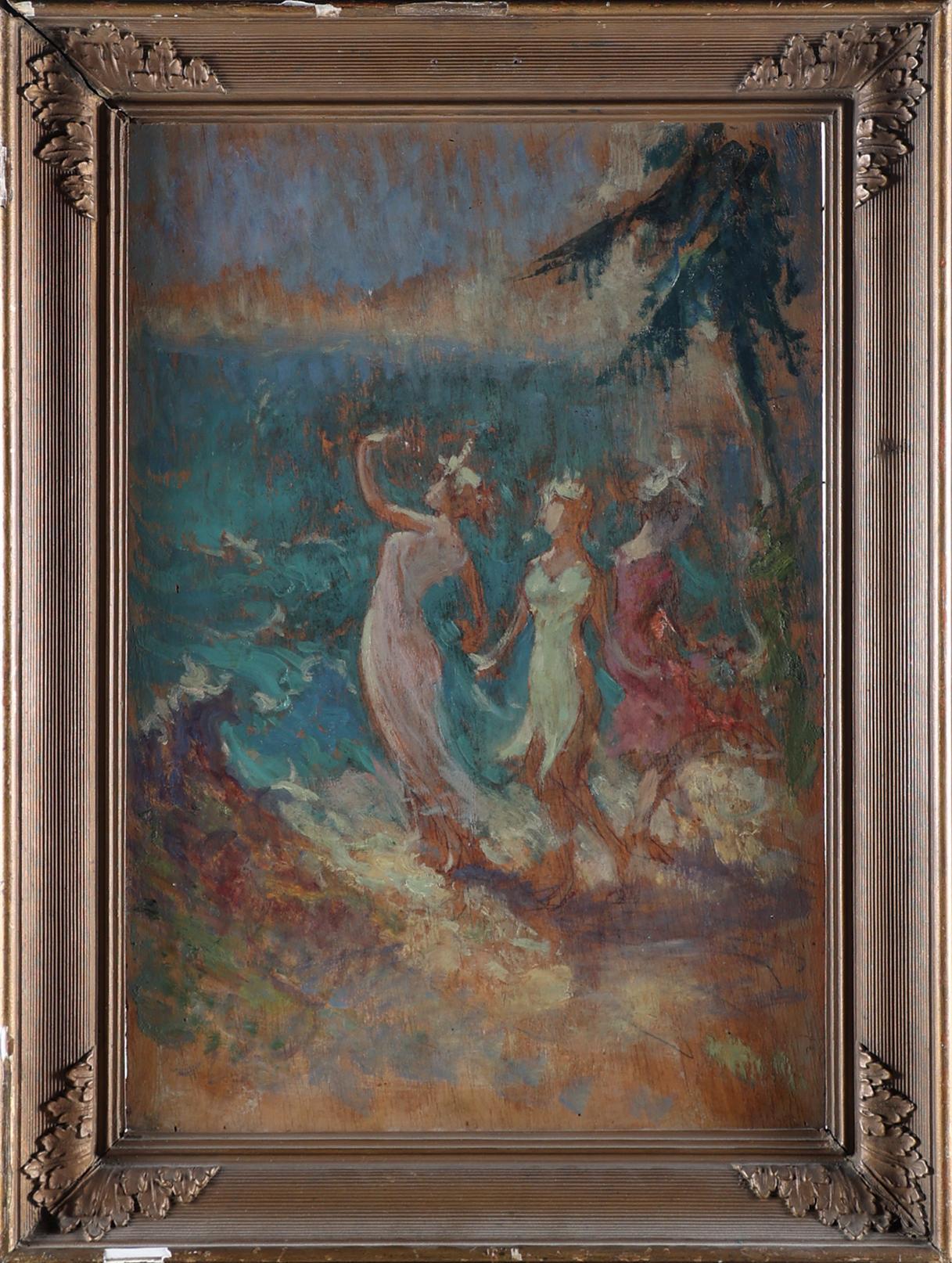 Omgeving Ker-Xavier Roussel, Badende vrouwen langs de kust, olieverf op paneel, 61 x 42 cm., niet gesigneerd, provenance particuliere collectie