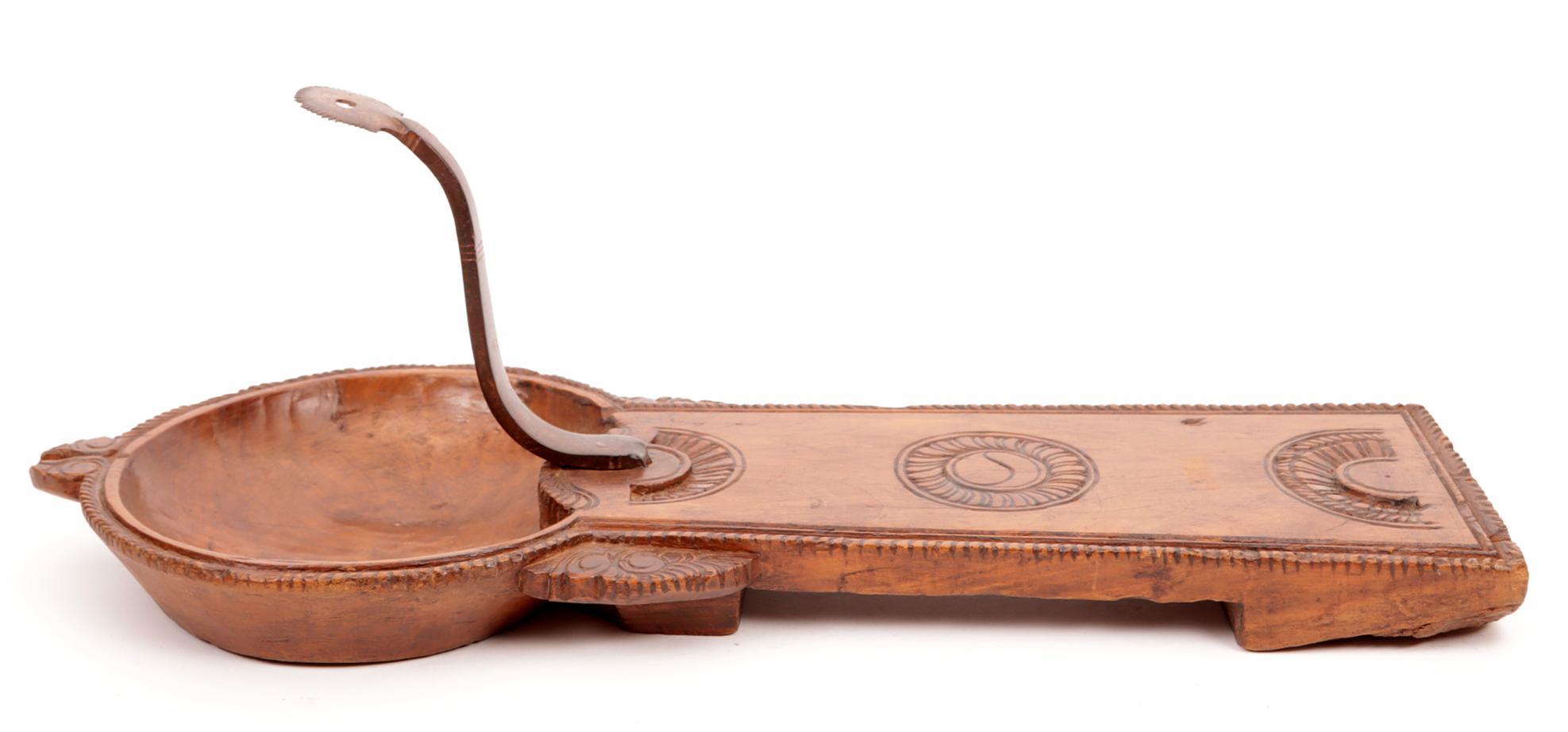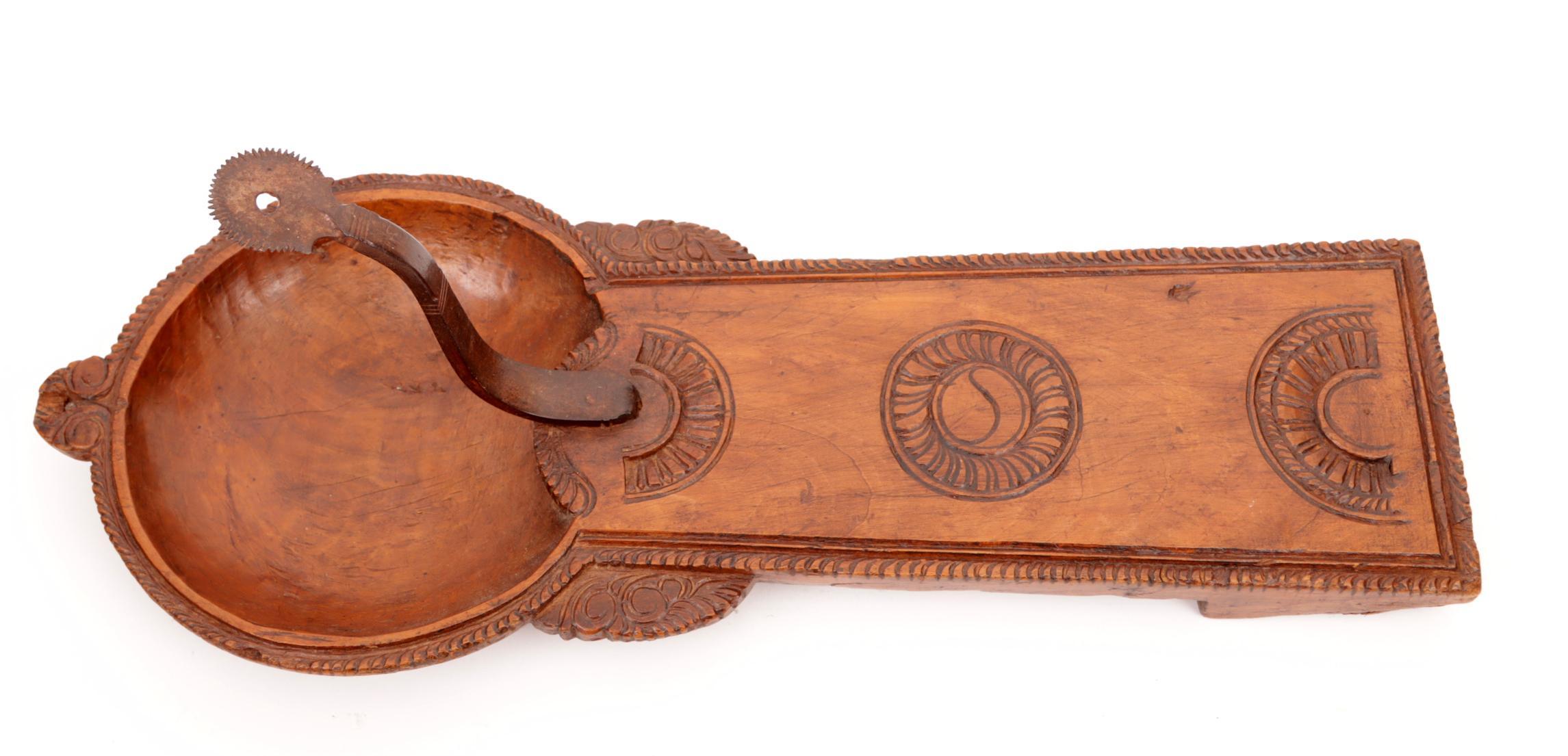 Antieke rijkbewerkte Spaanse notenhouten kokosnootschraper