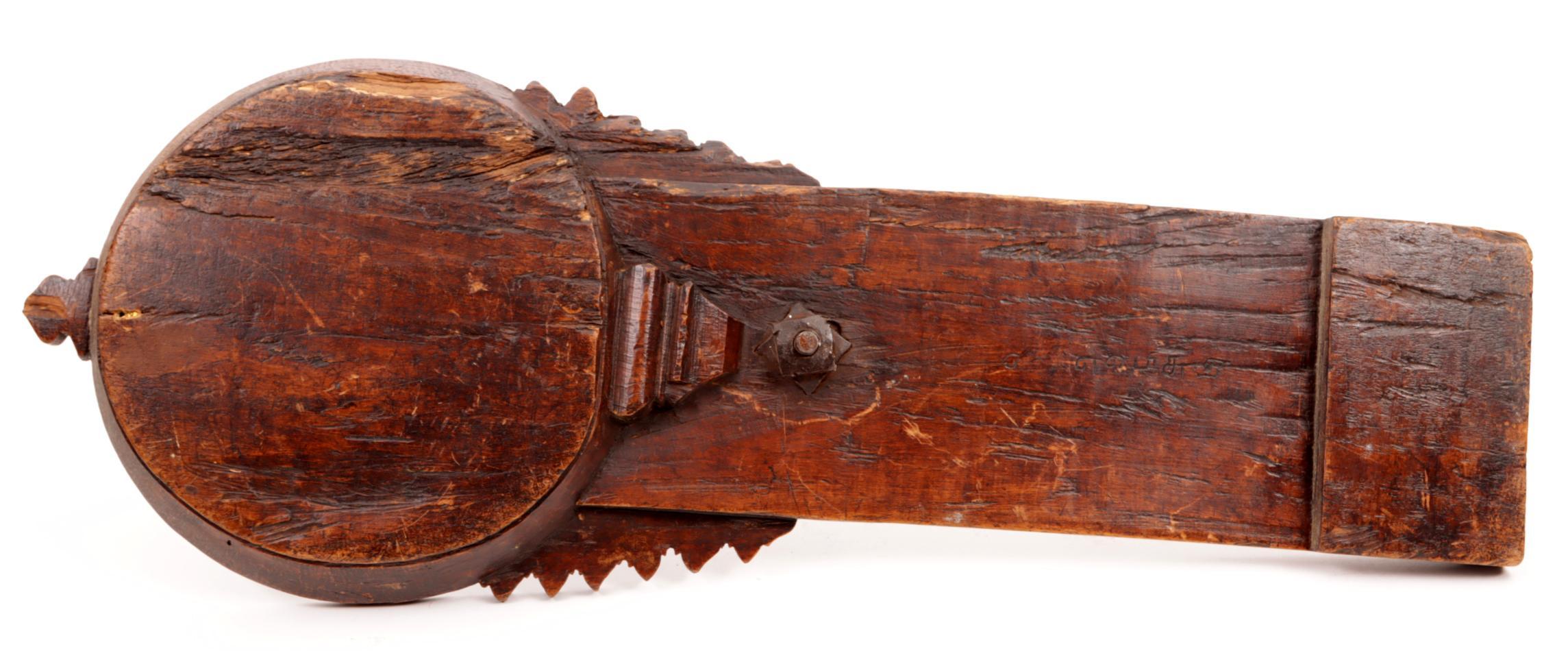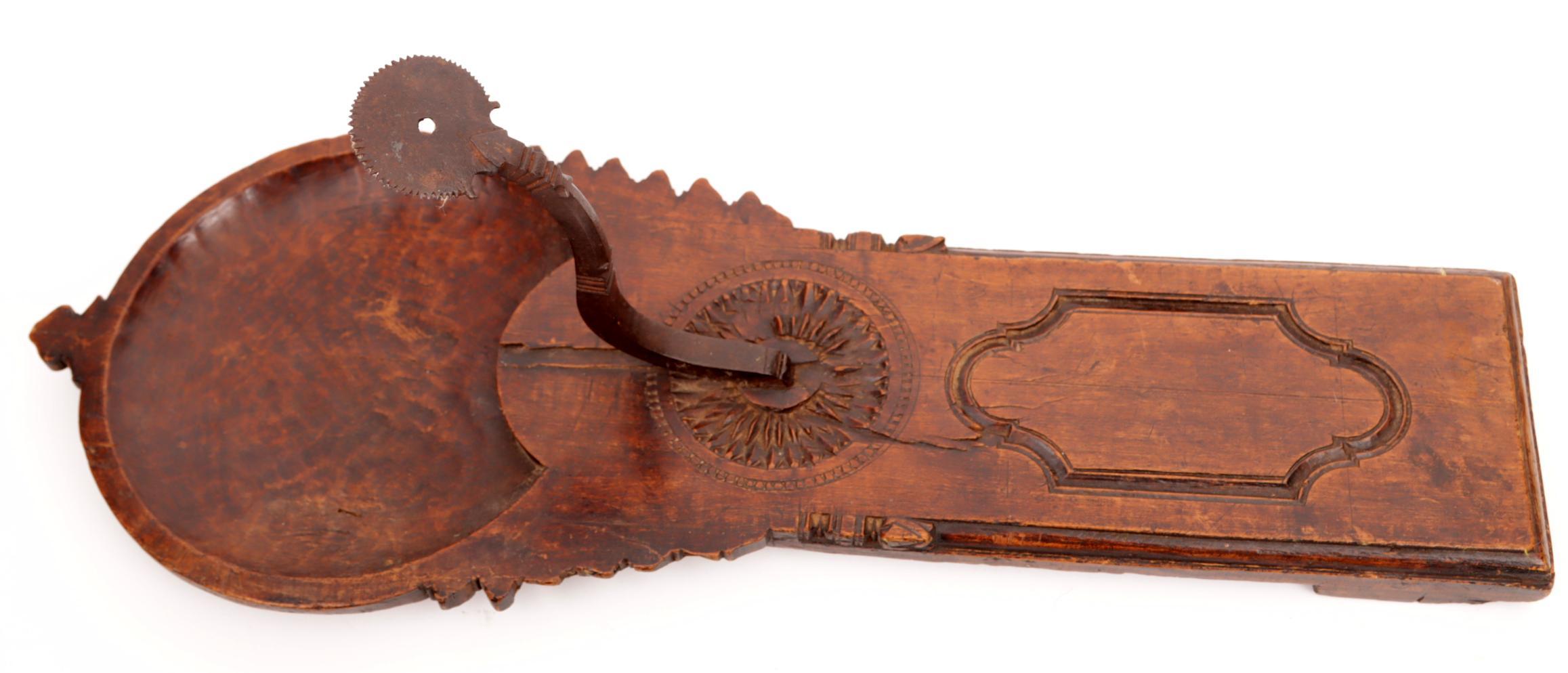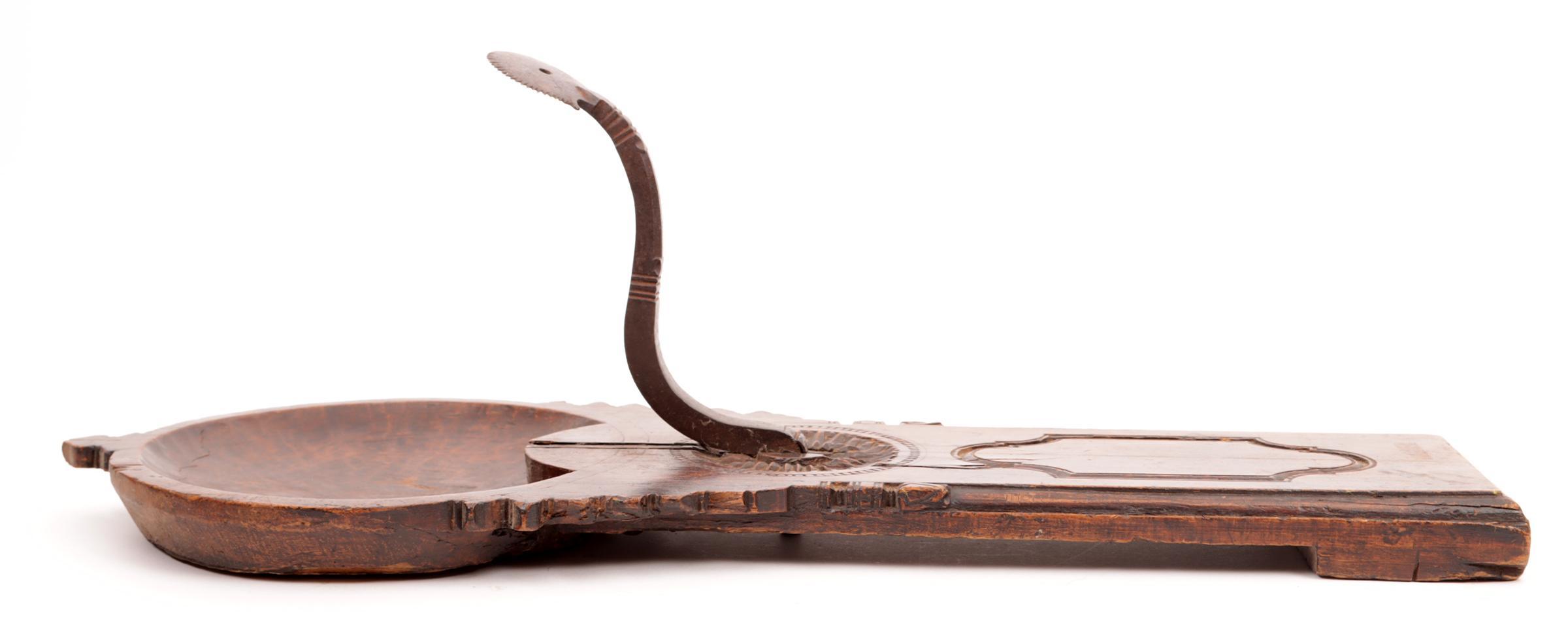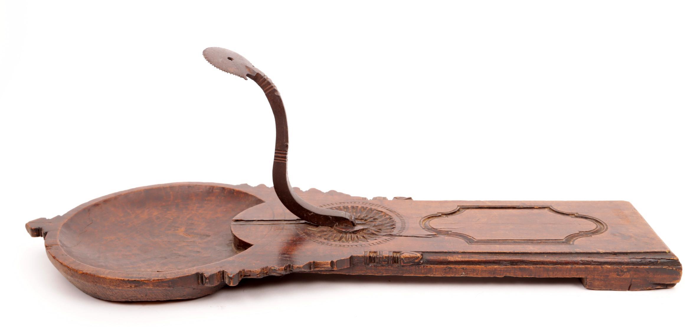 Antieke rijkbewerkte Spaanse notenhouten kokosnootschraper