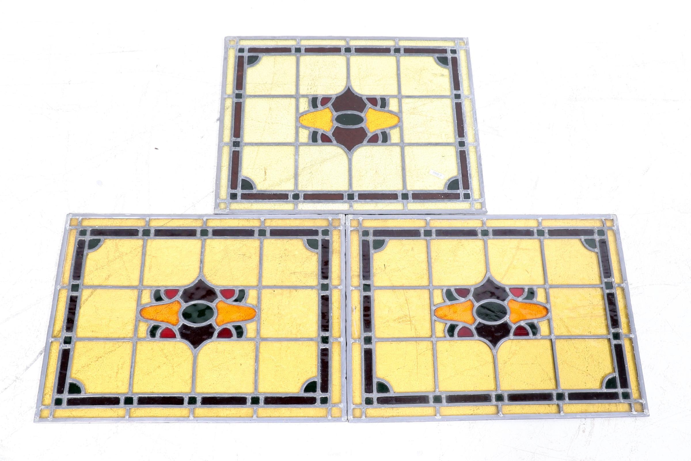 Koop van 3 glas-in-lood ramen, h.58 x b.45,5 cm.